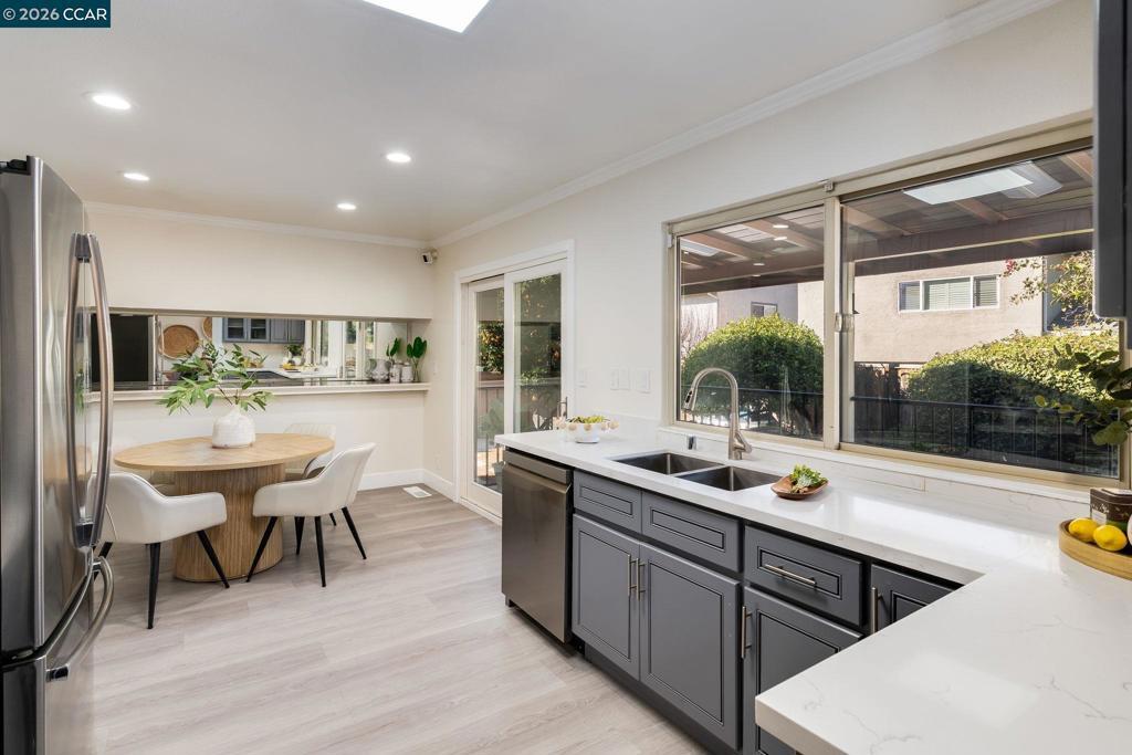 *Open house this Saturday & Sunday 1-4pm* Welcome to this beautifully updated home tucked away on a quiet cul-de-sac in desirable San Jose. Designed for modern living, the open floor plan is enhanced by sleek laminate flooring and abundant natural light throughout. The updated kitchen features stainless steel appliances, contemporary cabinetry, modern hardware, and clean, refined finishes—perfect for both everyday living and entertaining. The main living area is anchored by a stunning stone fireplace with elegant arched detailing, creating a warm and inviting focal point. Spacious bedrooms include walk-in closets with built-in storage and custom cabinetry, while the updated bathrooms showcase modern fixtures and thoughtful design. Step outside to your private backyard retreat, complete with a covered patio ideal for outdoor dining and relaxation. The expansive yard offers plenty of room to enjoy, highlighted by a private swimming pool—perfect for warm California days. Adding to the home’s appeal are owned solar panels, providing energy efficiency and long-term savings. Conveniently located near schools, shopping, and freeway access, this home offers the ideal balance of comfort, style, and accessibility—a genuine move-in-ready opportunity in a peaceful neighborhood setting.