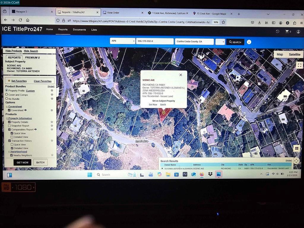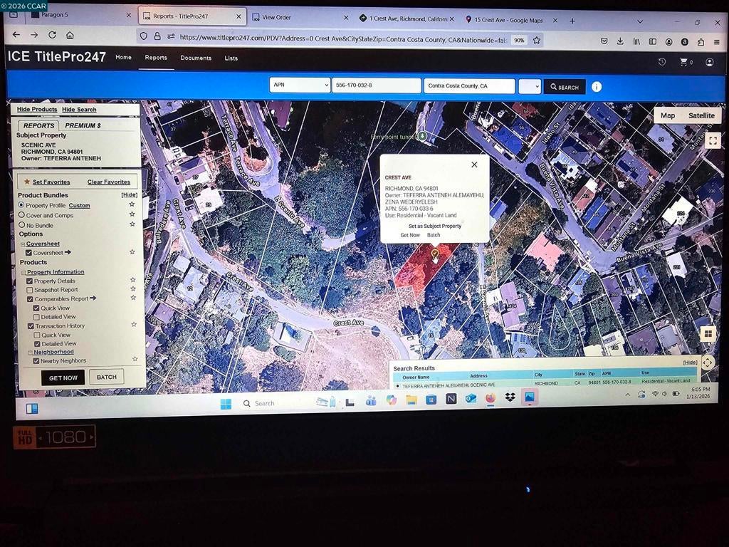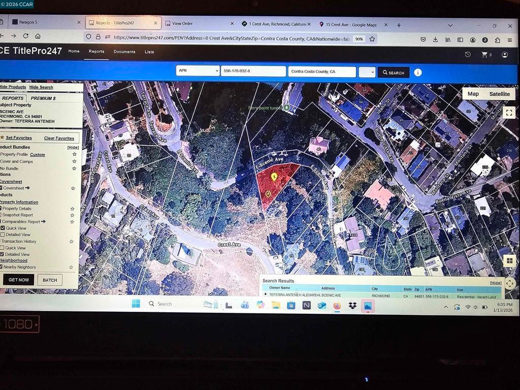 Rare two-parcel hillside opportunity with stunning Bay views and street access. This exceptional offering includes two adjacent lots totaling approximately 15,225 sqft providing outstanding flexibilty for building a custom home or holding as a long-term investment. Parcel 1 - approximately 9,214 sqft. Premier building parcel with access from Crest Drive and Scenic Drive. Ideal for multi-level home. Minutes to local restaurants, grocery stores, and everyday conveniences. Near waterfront parks, marinas, beaches, kayaking spots, and shoreline walking trails. Call 510-685-3596. Parcel 2 - approximately 6,011 sqft. Secondary parcel with access from Scenic Drive. Excellent for guesthouse, workshop, studio, rental or added privacy or open space.