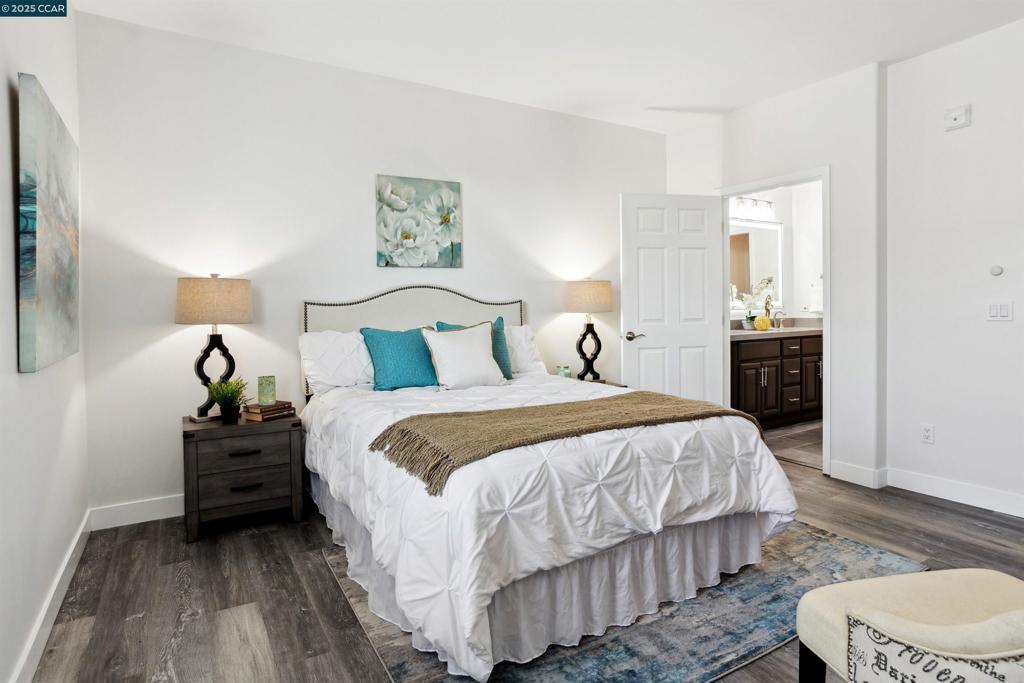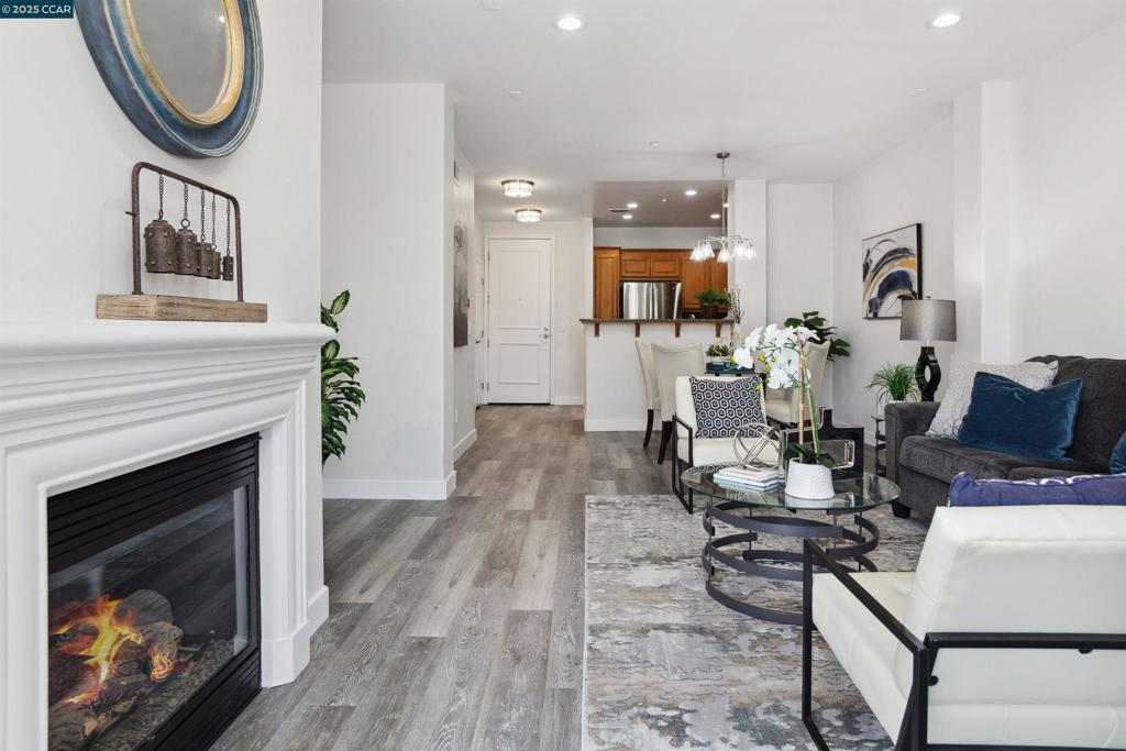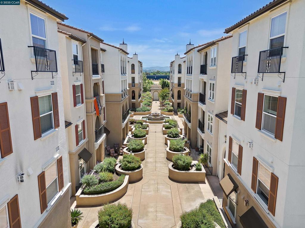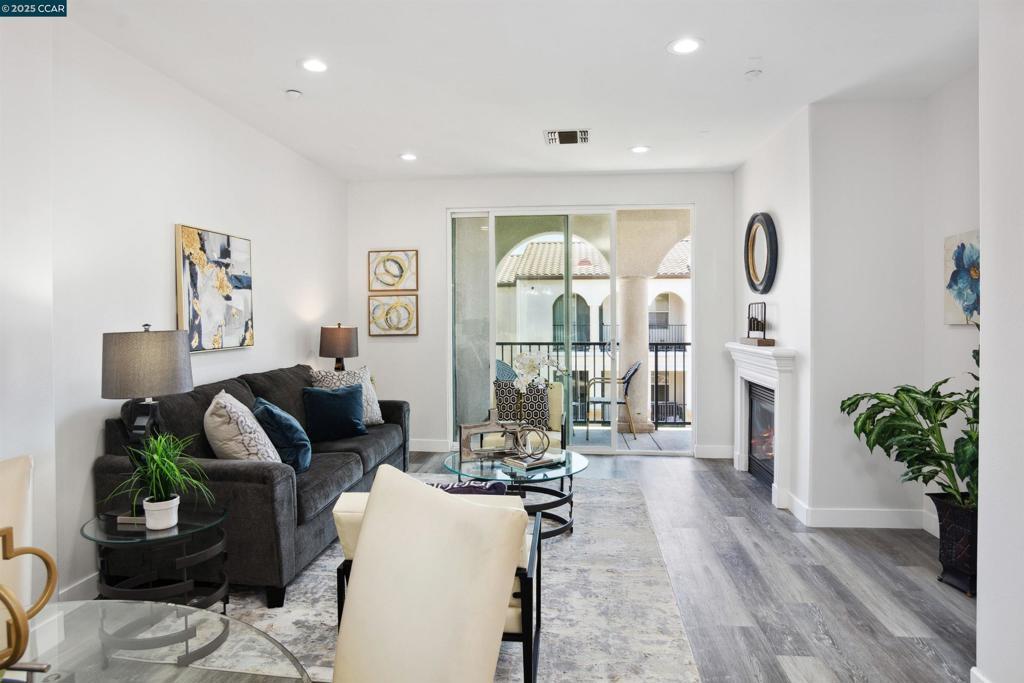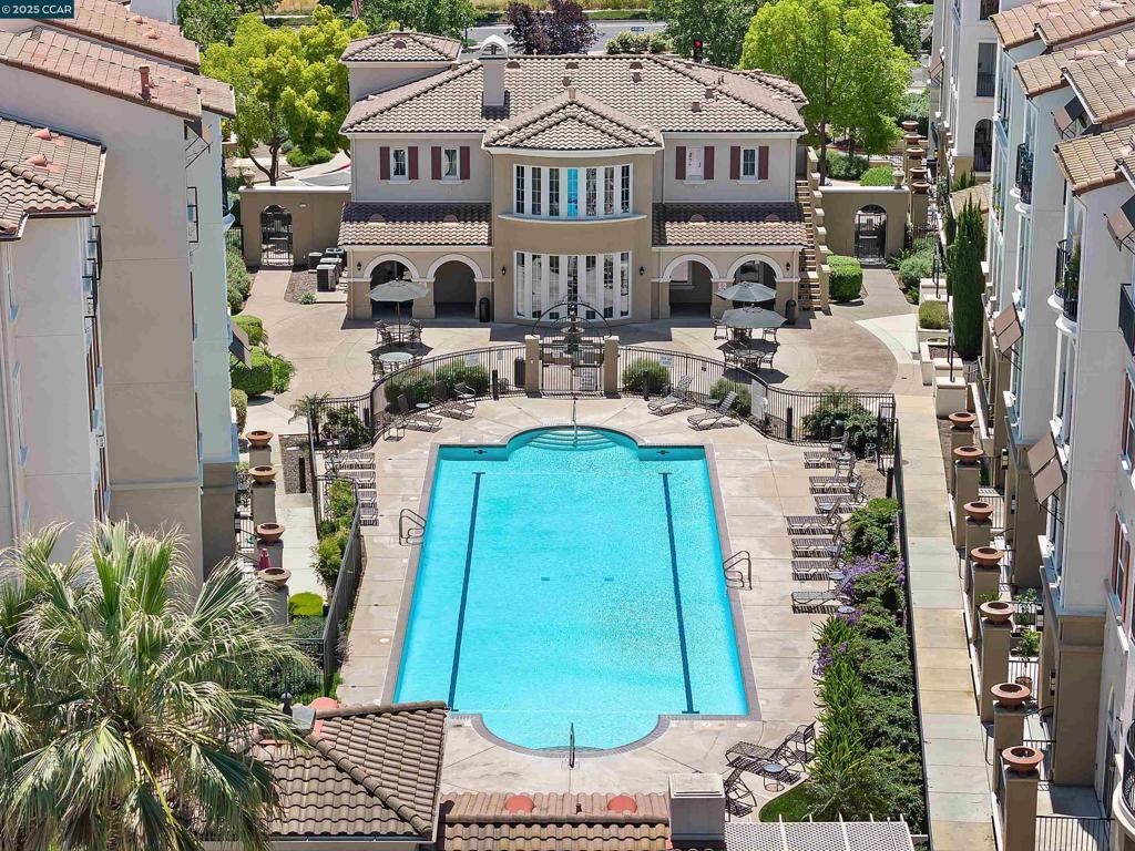 Exceptional top-floor end-unit condo w/contemporary design. $50K of updates inclds all new stainless appls, flooring, interior paint, bthrms, fixtures, blinds. Located in The Terraces at Dublin Ranch a luxurious 4-story gated community around inviting courtyards, fountains, gardens and resort-style amenities incldg pool, clubhouse w/frpl & kitchen, fitness center, elevator access to each floor, secured parking & in-unit GE washer/dryer. 1246+/- light-filled SF. East & south-facing views. Central AC. 3 bdrms. 2 bths. inclds primary suite w/walk-in closet. En suite w/porcelain tile floors, dual-sink vanity, sliding glass shwr dr. Spacious living & dining area. Switch-operated gas frpl. Recessed niche for media cabinetry. Slider to 500+/-SF balcony overlooking gardens, courtyard. Kitchen w/stainless sink, granite counter, bksplsh, bkfst bar. 2 bdrms share full bth w/tub/shower combo. Adjacent to 5-acre Bray Commons Park w/bbq grills, picnic areas, basketball & volleyball courts, playground, walking paths. The East Dublin location is within a mile of Fallon Gateway shopping & restaurants and top-rated K-8 schls. Walk to the new Emerald High Schl. Near SF Premium Outlets, Fallon Sports Park. Los Positas College, less than a 6-mile drive. Convenient access to freeways & BART station.