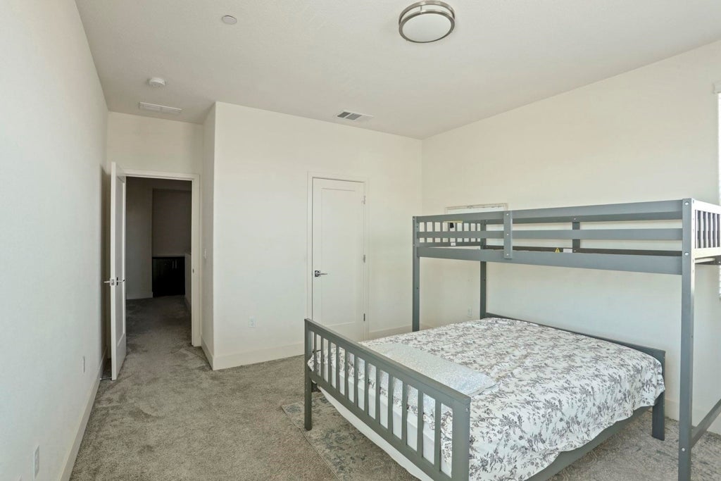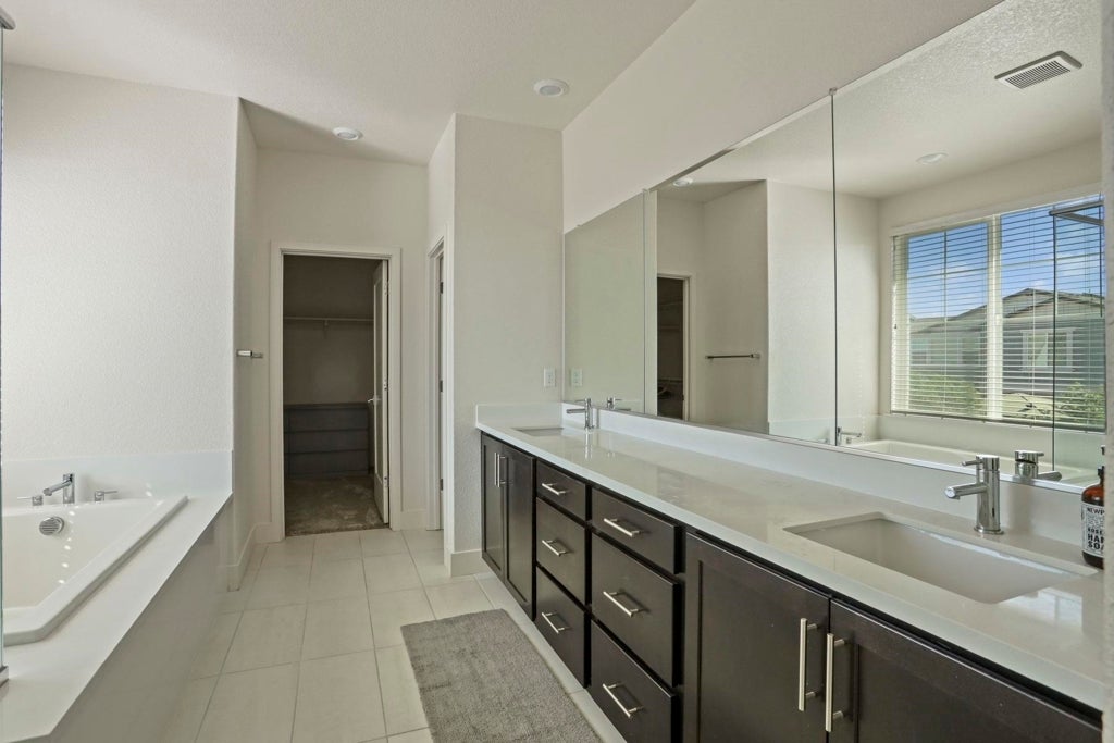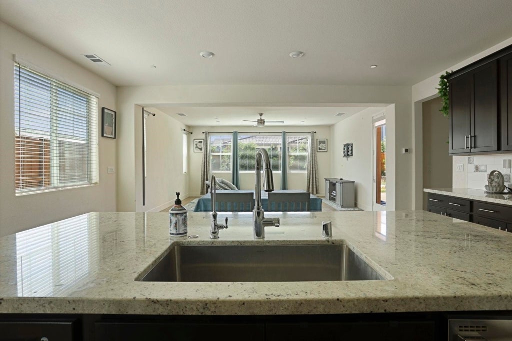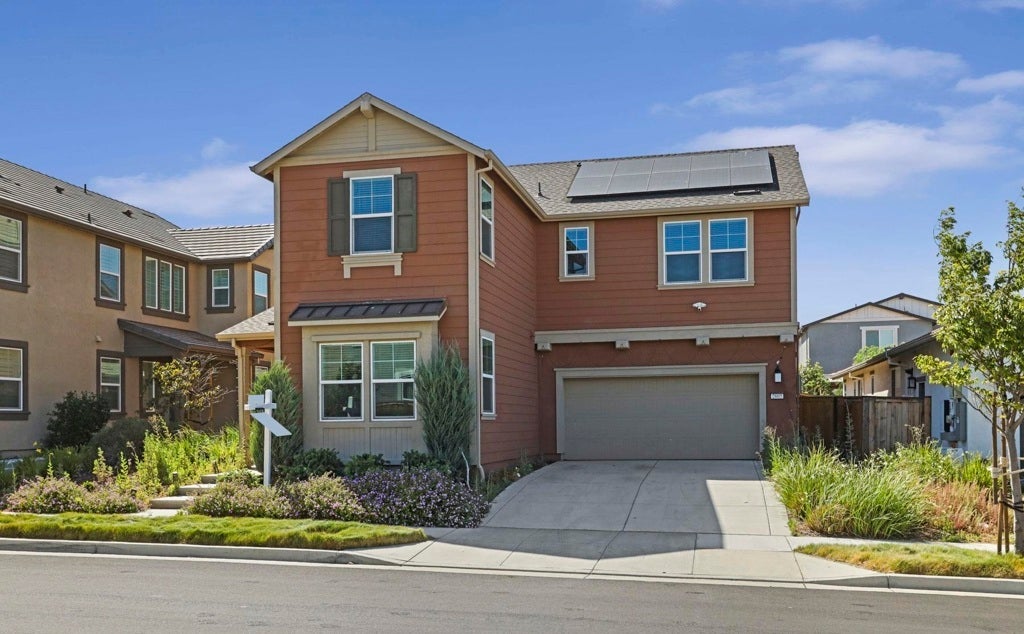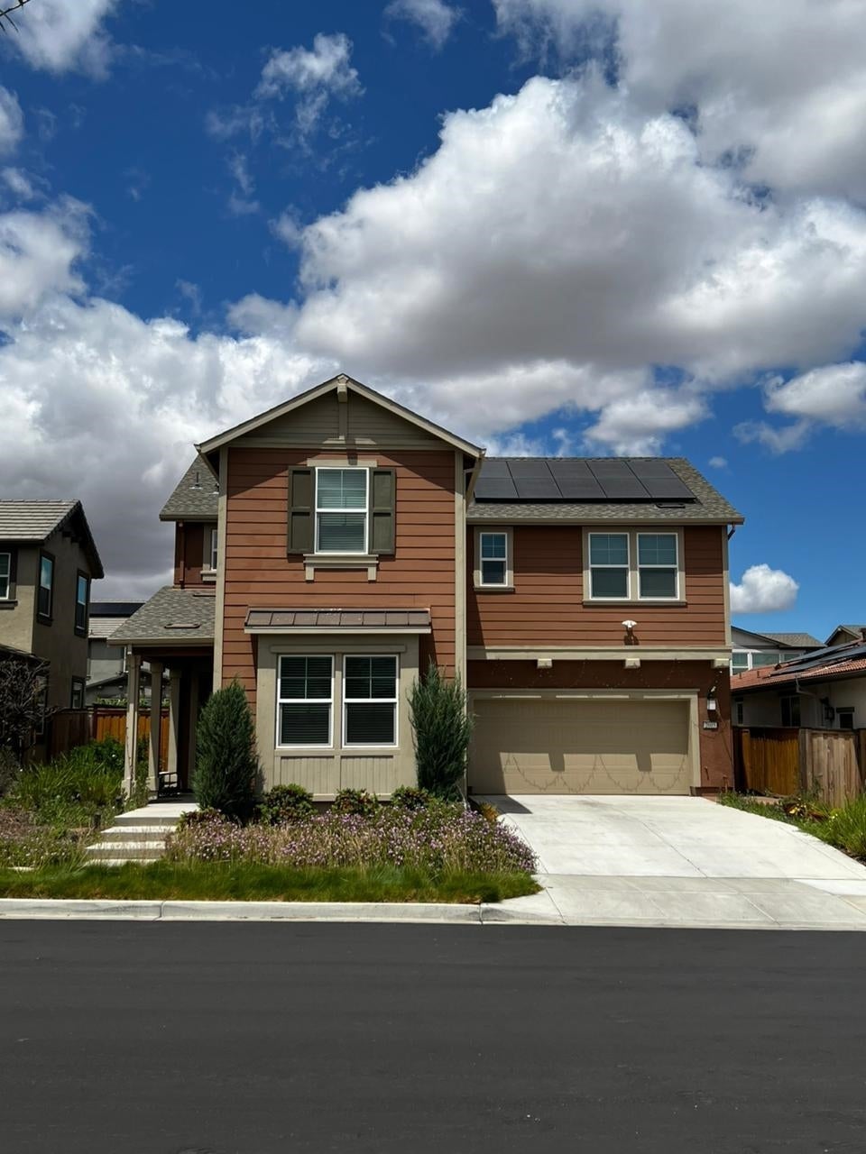Welcome to this GORGEOUS EAST FACING, 4 BEDROOM, 3 BATHROOM, 2 CAR GARAGE, OWNED SOLAR, BUILT IN 2021, 2,563 sq ft of living space sitting on a massive 5,734 sq ft lot in the highly sought after TRACY HILLS. Upgrades include WOODEN VINYL FLOORS, PREMIUM CARPETS,& EPOXY FLOORING and STORAGE RACKS in the garage. It’s designed for comfortable living as the 1st floor comes with a bedroom and full bathroom. The great room combines the living room, kitchen and dining area creating an open and inviting area with plenty of natural light. The MODERN KITCHEN boasts QUARTZ COUNTERTOPS, SLEEK STAINLESS STEEL APPLIANCES, A LARGE ISLAND, CUSTOM BACKSPLASH, & WALK-IN PANTRY. The primary suite is a true sanctuary with a luxurious en suite bath featuring a LARGE SOAKING TUB, SEPARATE SHOWER, HIS AND HER SINK, AND A GENEROUS WALK-IN CLOSET. Enjoy the LARGE BACKYARD with FULLY GROWN FRUIT TREES and lots of green space to play & party with family & friends. Enjoy unparalleled PRIVACY as there is lots of open space in the NORTH/EAST CORNER & front of the home. It’s walking distance to TOP RATED CORRAL HOLLOW ELEMENTARY SCHOOL. Amenities include a CLUBHOUSE, & SWIMMING POOL perfect for summer. You’ll have EASY ACCESS TO I-580 & ACE train station. Don't miss the chance to make this your dream home!!!