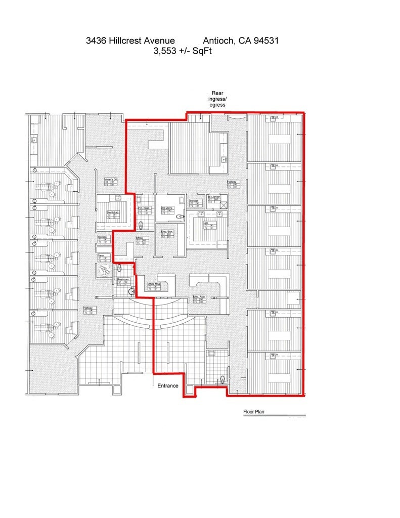 Exceptional opportunity for medical professionals to occupy a spacious 3,606 SF turn-key medical suite. This well-configured office in the heart of Antioch. Positioned in a high-visibility medical/office complex with excellent access to major arterials. The space is ideal for Aesthetic Medicine, Plastic Surgery, ENT, Dermatology, Surgery Center, and more. The 3,406 SF suite is turn-key and conducive to clinics & healthcare services. With (6) oversized exam/procedure rooms plus two (2) private offices, Reception/waiting area designed for patient flow and comfort, Staff support spaces including employee lounge, storage, and staff lockers, (3) restrooms, Lab, Front and Rear Access, ADA compliant, Plenty of natural light and modern finishes, Ample parking for patients and staff. All in a well-maintained professional complex with medical tenants (including John Muir, and Delta Association of Realtors), and Easy access to Highway 4, public transit, and surrounding business amenities.