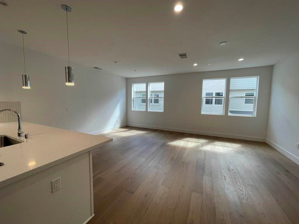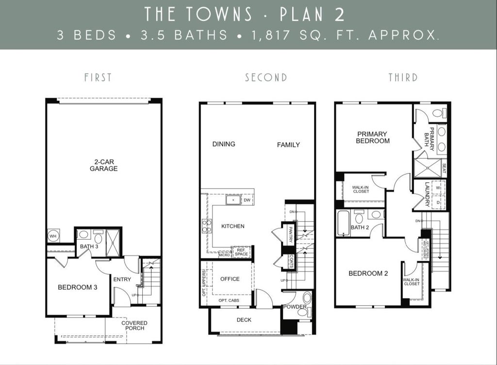 This is plan one in the towns. It’s just over 1700 ft.² with three beds and 3 1/2 baths. It has a two car garage and a bedroom at the entry level. It has a nice covered porch with its own bathroom and walk-in closet. On the second floor is a kitchen with a wonderful island surrounded by beautiful quartz and an open floor plan that includes a dining and family area along with a balcony on the second floor, there is a powder area for your guests when entertaining and a coat closet perfect For having friends and family over. Your appliances are all brand new and comes with the unit. This is an all electric unit using solar power and on the third floor you have two bedrooms, a master bedroom and another bedroom where your laundry room is along with a folding table. There are two generous bathrooms at this top level as well with two walk-in closets. You have to come see it.