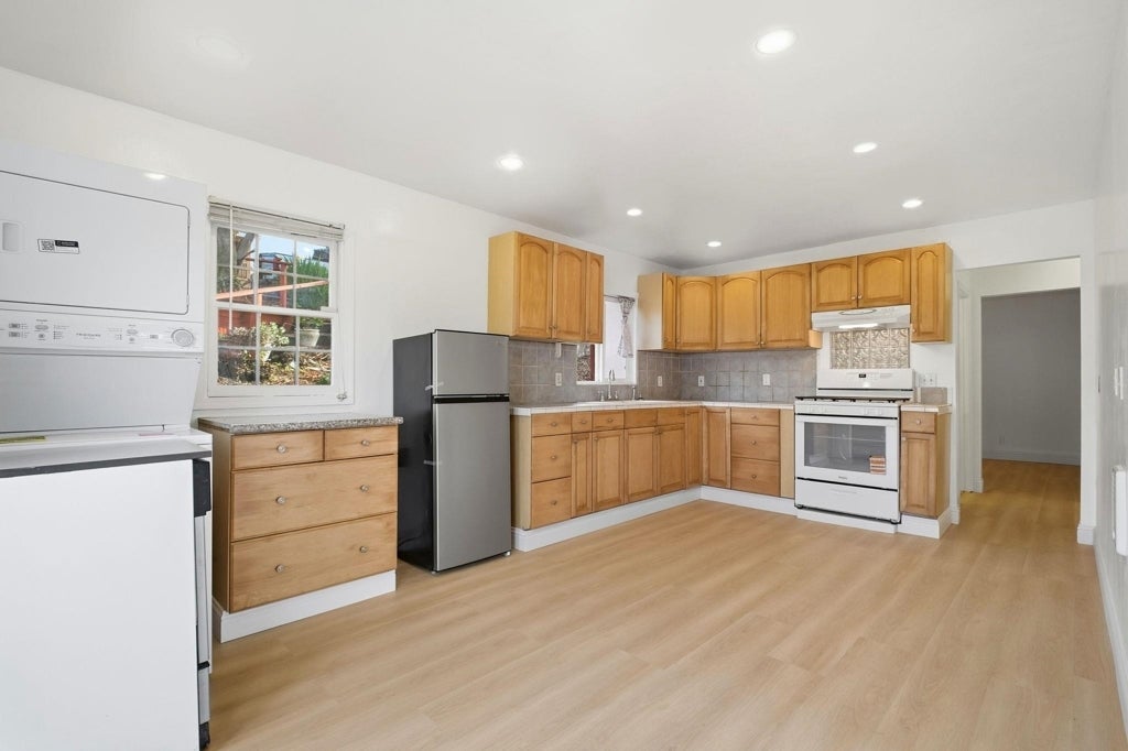 Welcome to this Charming and Warm 3-bedroom, 1-bath + A Huge Family Room Single-Level Home nestled in one of the most peaceful neighborhoods-Hillcrest Knolls. Step inside to find a bright, spacious living room with large windows that fill the space with natural light. The open dining area flows seamlessly into the kitchen, creating the perfect setting for everyday living and family gatherings. Freshly painted interior, new appliances, new deck, and new flooring. Great layout with lots of potentials. The oversized Family Room perfect for entertainments or converting to a master suite/working office/studio. The private backyard decks provide the perfect backdrop for summer BBQs, morning coffee, or peaceful evenings under the trees. Large backyard, this property offers endless outdoor possibilities — garden, play, entertain, or even build an ADU. 3 parking spaces, and convenient access to BART, 580/880 freeways, and nearby parks, this home combines comfort, convenience, and value — all in one. Whether you’re a first-time buyer or investor, this is an excellent opportunity to make your move in San Leandro!