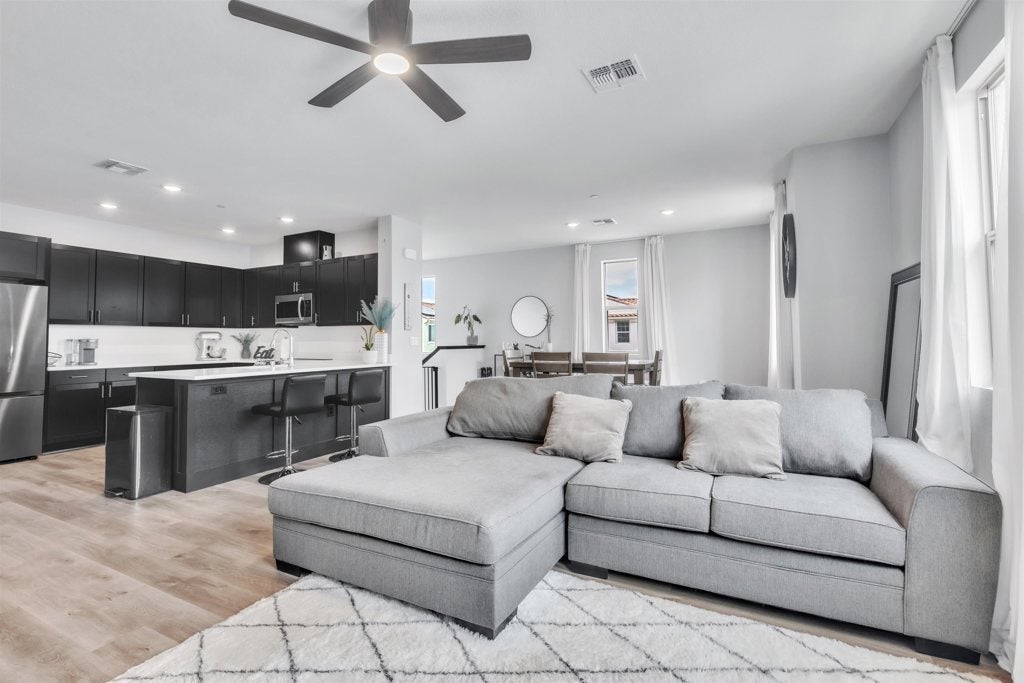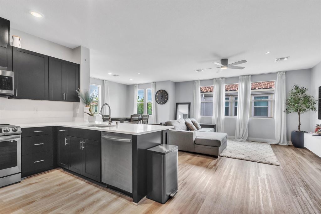NATOMAS PARK LOCATED IN ARTISAN SQUARE COMMUNITY BUILT IN 2022 - DESIRABLE UPPER LIVING AREA - CORNER UNIT - LOCATION, LOCATION ONLY 10 MINUTES TO AIRPORT AND CLOSE TO FREEWAY, SHOPPING, RESTUARANTS, WALKING TRAILS, NATOMAS PARK - Main level entry & 2 car garage - Upper-level living area offers open concept with laminate flooring throughout w/carpets in bedrooms - Upgraded paint throughout - Spacious great room & dining area open to Chef's kitchen w/Quartz counters, SS appliances, eat at bar & abundance of cabinets - Primary bedroom w/En Suite bath offers, Quartz vanity w/dual sinks, large shower w/glass door & walk in closet - Spacious secondary bedroom - Secondary bath w/Quartz counter & tub/shower combo - Prime corner lot w/private courtyard entrance & patio area - Community Pool, BBQ area & Park - All this and more...