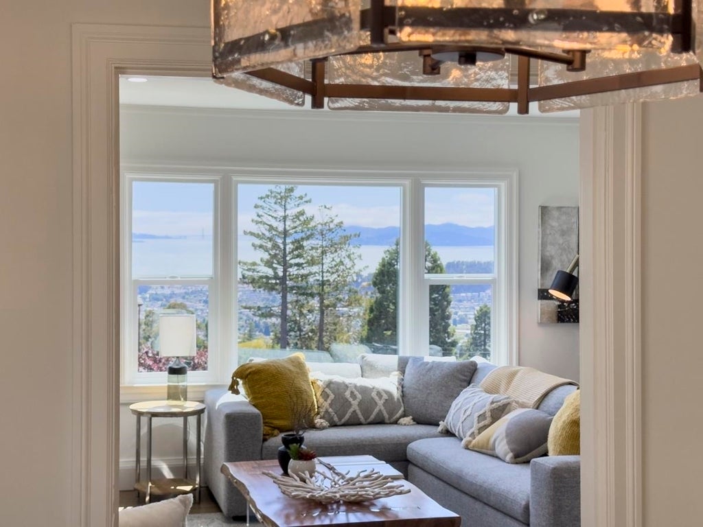 *Transparent Price* Beautifully updated, this 3-bedroom, 2-bath Cragmont home offers 1,784 sq ft of refined living and stunning Bay views. From the front porch, enjoy sweeping vistas of the Golden Gate Bridge, Angel Island, and the San Francisco skyline. Inside, natural light fills the living room with its classic fireplace and new floors. The open kitchen features stainless steel appliances, a gas range, bar seating, a breakfast nook, and a dining area—all oriented toward the iconic views. Two main-level bedrooms include one with Golden Gate views and dual closets, plus a serene garden-facing room. The refreshed hall bath adds modern style. Upstairs, the primary suite provides a peaceful retreat with skyline views, a walk-in closet, and an updated en suite bath. Just steps above, a bonus room captures unmatched bridge views—perfect for an office or guest area. The terraced backyard offers multiple outdoor spaces, complemented by a tandem garage, off-street parking, and a landscaped front yard. A rare find, this home delivers exceptional Bay panoramas in one of Berkeley’s most sought-after neighborhoods.