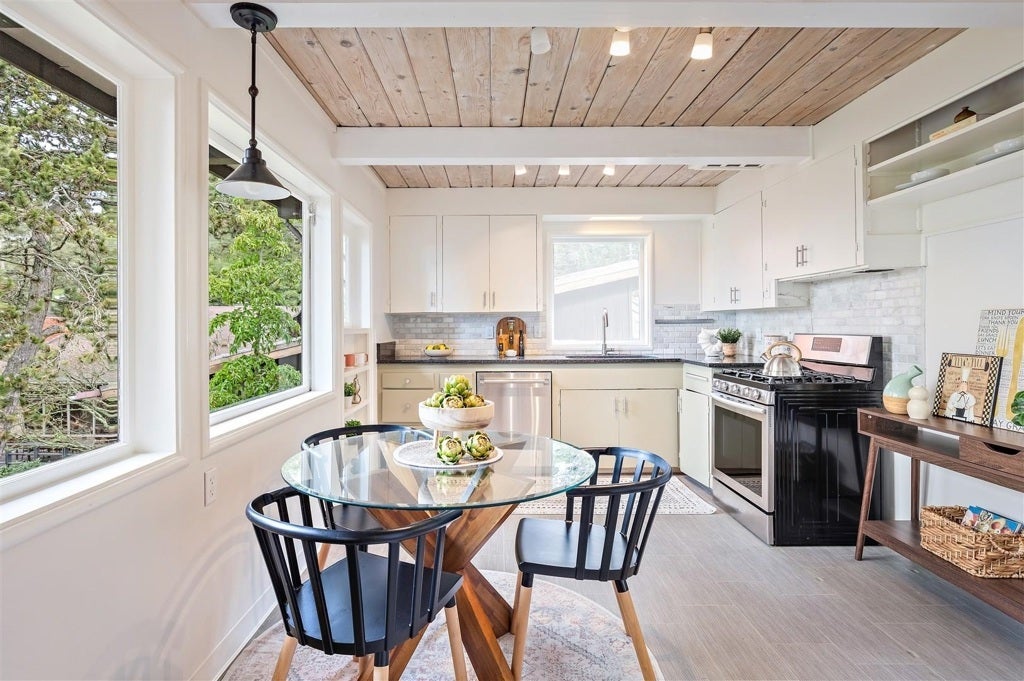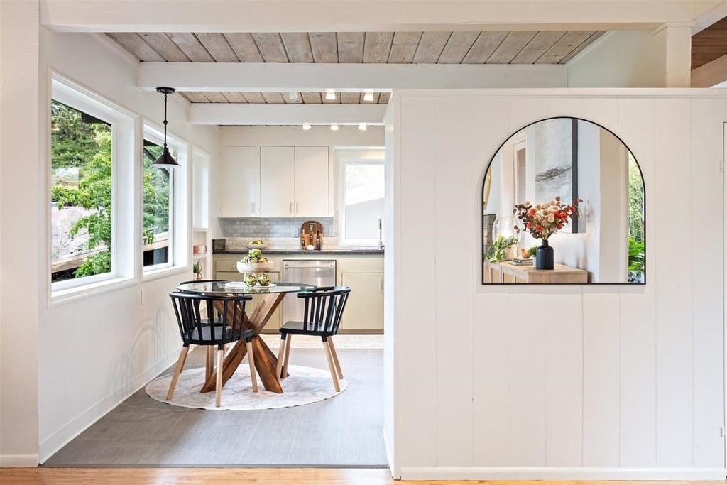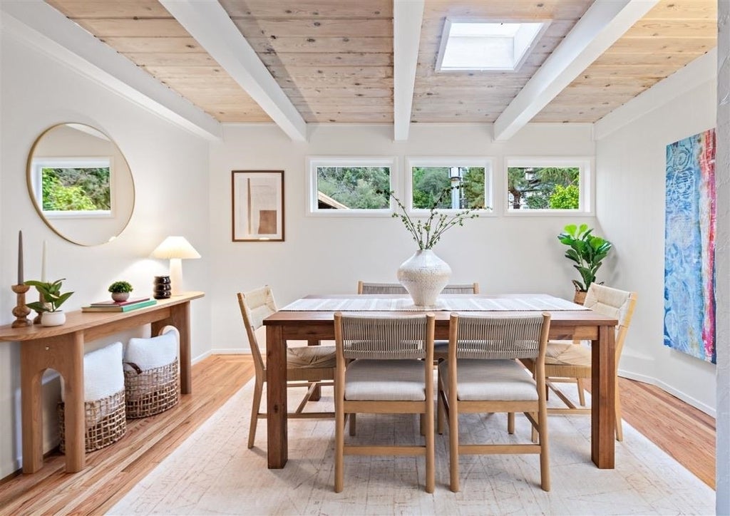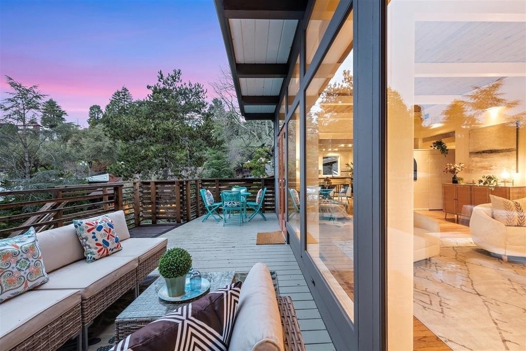 This classic Mid-Century Modern home filled with warmth, light, and quiet character honors its architectural origins with a clean, streamlined design that emphasizes the connection between indoor and outdoor spaces. An open floor plan and beamed ceilings reflect the Mid-Century ideals of airy flow, visual harmony and structural simplicity. Picture windows maximize natural light and frame serene, wooded views. At the heart of the home, the front room opens to the kitchen and dining area, creating a welcoming, light-filled space where daily life flows with ease. Views of the surrounding landscape provide a sense of calm, and the layout feels both open and intimate—ideal for quiet mornings or gatherings by the fireplace. In addition to two main-level bedrooms, the lower level includes an additional bedroom, office, full bath, and a versatile bonus room. The deck and lower level open onto a 6,600+ lot, where meandering paths and secluded garden areas are perfumed by dogwood and fruit trees. Located within the Berkeley Unified School District and just minutes from the Lawrence Hall of Science and Tilden Park, this special home offers a lifestyle rooted in nature, community, and possibility.