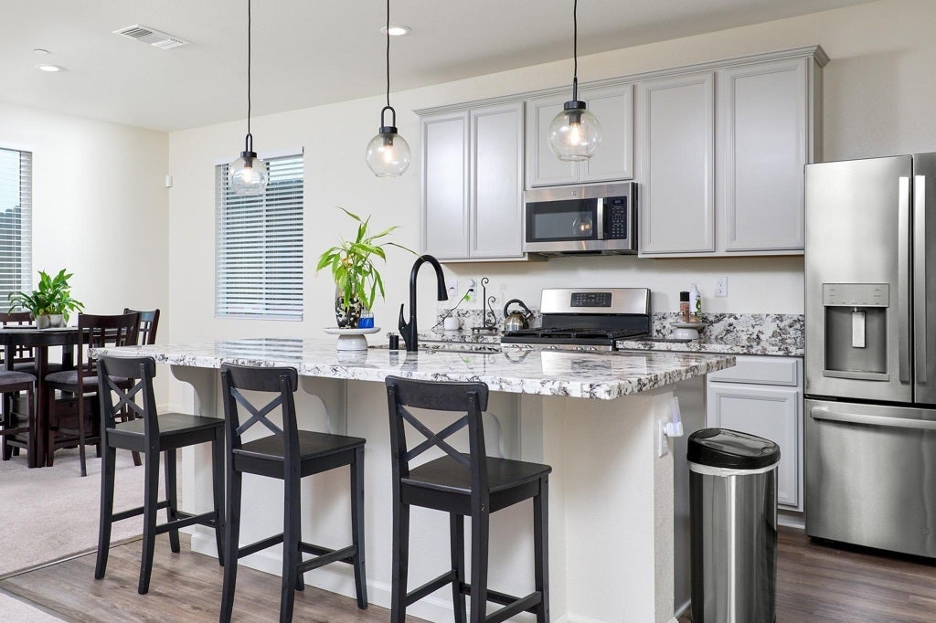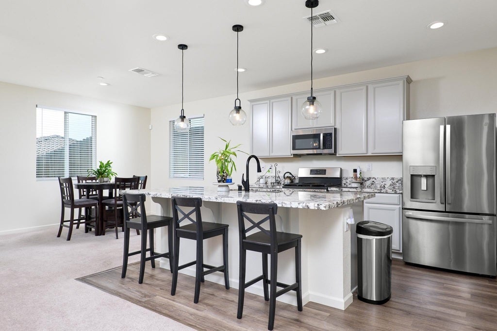 Awesome newer single story in Antioch! This spacious 4 bedroom 3 bathroom home was built in 2021 and has so many features! Wonderful open floor plan with gorgeous kitchen island, large pantry, buffet cabinets, gas range and microwave, stylish lighting and newer flooring throughout. Large primary suite with huge closet and ensuite bathroom! Generous spare bedrooms, inside laundry and wide foyer for every generation entering the home! Great flat backyard with covered patio waiting for your special Spring and Summer touches! Save thousands with the leased solar! Don't miss this darling home!