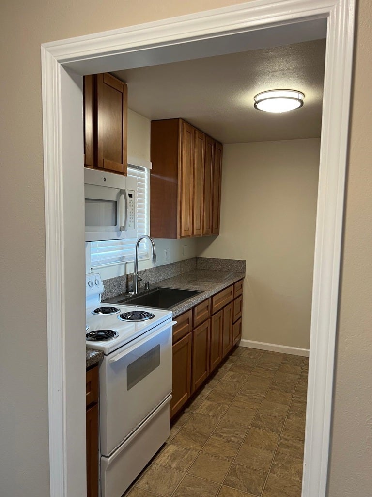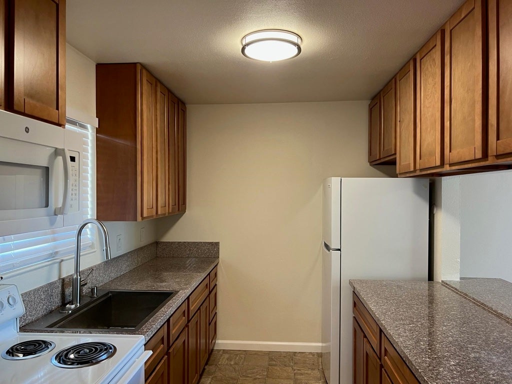 Updated One bedroom apartment in quaint property conveniently located on the corner of Mulberry & Thornton! New carpet and freshly painted throughout! Kitchen offers granite counters, stainless steel sink, newer appliances including built-in microwave, ample cabinets provides many storage options and breakfast bar. Main living area with lush wall to wall carpet and slider access to private balcony. Bathroom features shower over tub with glass shower door and marble shower walls, marble countertop and nickel fixtures. Bedroom with wall to wall carpet and mirrored closet doors. Linen closet and oversized entry closet offer additional storage. Dedicated, covered parking space and on-site laundry. Water & garbage is included in the rent.