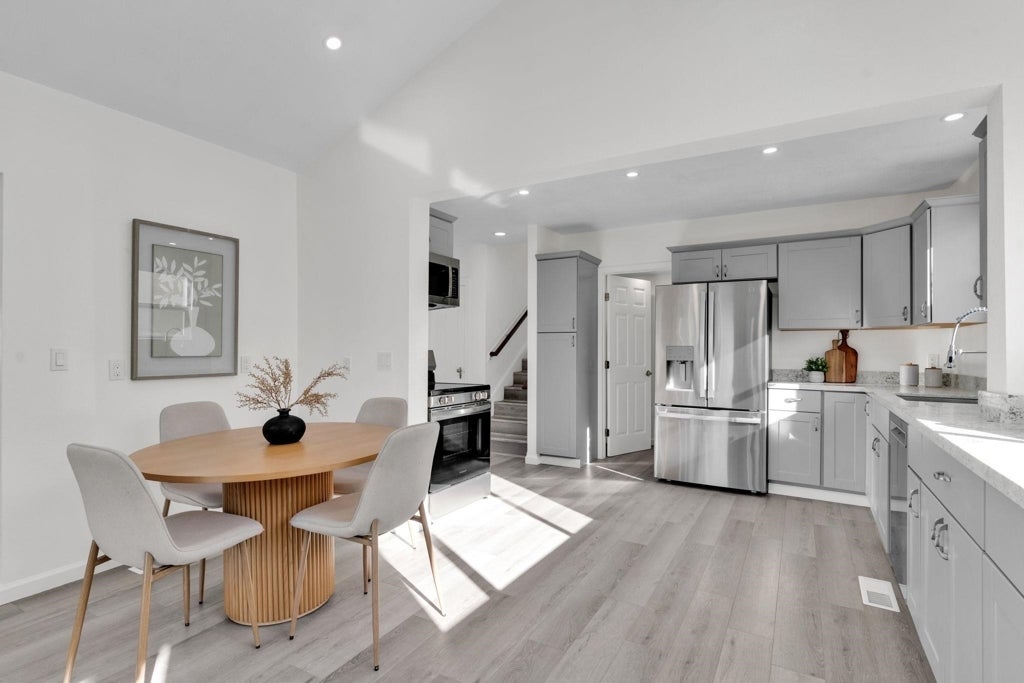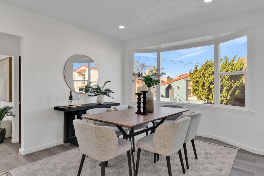 Nestled in a vibrant North Berkeley neighborhood, this beautifully renovated split-level home dates back to the early 1930s. The inviting front porch leads into a sunlit living room, complete with an original tiled fireplace that sets a warm and welcoming tone. The home features a versatile floor plan with three spacious bedrooms and two bathrooms. The upper level is dedicated to a private master suite, while two additional rooms upstairs can serve as a guest bedroom, home office, or family/TV room. Energy Score of 4 A recently renovated kitchen balances style and practicality, offering abundant cabinetry, generous counter space, and modern appliances. This space is designed for both everyday cooking and entertaining and is flooded by an abundance of natural light. The attached single-car garage provides a dedicated workspace/bonus area and a conveniently located laundry zone, combining practical features with comfortable amenities. This home is a tranquil retreat in the midst of North Berkeley’s energy, providing peace and serenity while maintaining close access to local cafés, shops, and neighborhood favorites.