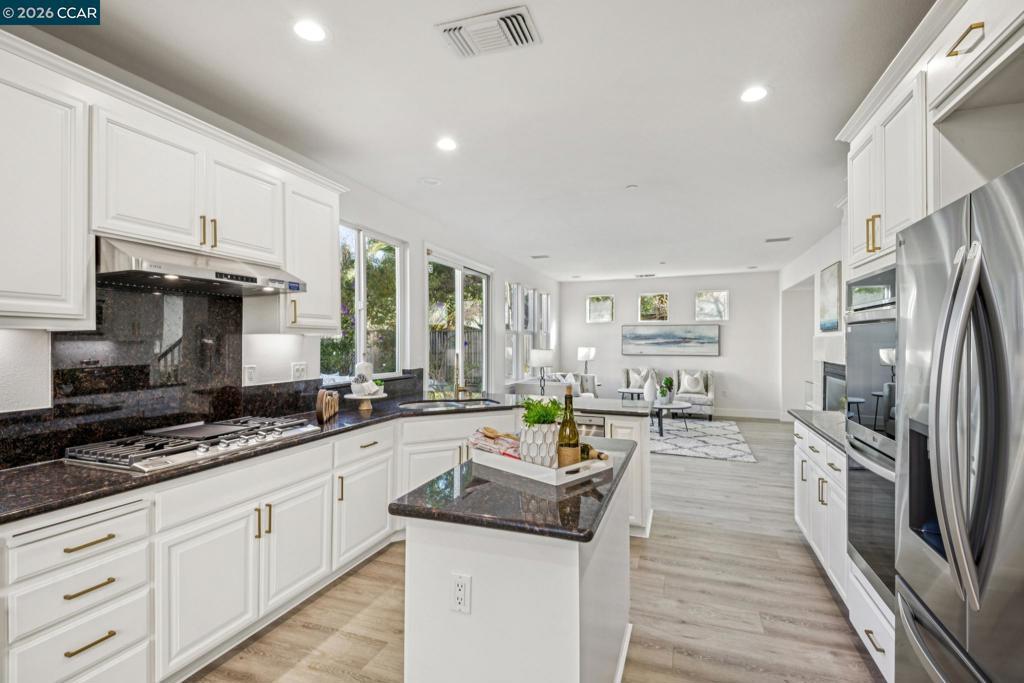 Welcome to this beautifully updated 4 bedroom + 4.5 bathroom home in Novato’s Hamilton community, where tree-lined streets, neighborhood parks, and scenic bay trails create a lifestyle families truly cherish. New 100% waterproof flooring, soaring vaulted ceilings a gracious formal living and dining room filled with natural light through a wall of windows, bedroom suite for generational living on the main level. New interior and exterior paint throughout the home. The kitchen boasts all new LG Stainless steel appliances, 36" gas cooktop stove with hood, double oven, refrigerator, dishwasher and microwave. Freshly painted cabinetry, and brushed brass hardware that adds a warm, refined touch. The luxurious primary suite on the second level serves as a peaceful retreat, complete with a generous sitting area perfect for relaxing at the end of the day. Two additional bedrooms and an open landing space offer versatile options for a play area, library, or office. Laundry room with brand-new washer and dryer, a 2-car garage, abundant storage, and meticulous attention to detail throughout. This exceptional home offers the space, comfort, and warmth families seek. Outdoor amenities like the Hamilton Bay Trail, parks, and proximity to SMART train appeal to commuters.