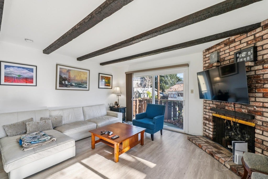 1401 Cottage St. Unit D is a 2-bed, 2-bath upper-level condo in the heart of Central Alameda. Natural light floods the living space, catching the brick fireplace and mid-century architectural lines as you enter. The private patio off the living room creates a perfect extension of the space for your morning coffee, end-of-day wind-downs, or just a quiet place to read. The home sits within an intimate 12-residence community and includes one off-street parking space plus storage. Your location delivers the ideal balance of calm residential living with access at your fingertips. Both Park Street and Webster Street are close by for dining, coffee, and errands, as well as lounges and lively weekend spots. Franklin Park is two blocks away for swimming, sports, and seasonal programming, and the shoreline sits close enough to make evening walks and weekend beach days a regular routine. With ferry access to Oakland and San Francisco, commuting is seamless. Plug into the city during the day and return to Alameda’s quieter coastal pace at night.