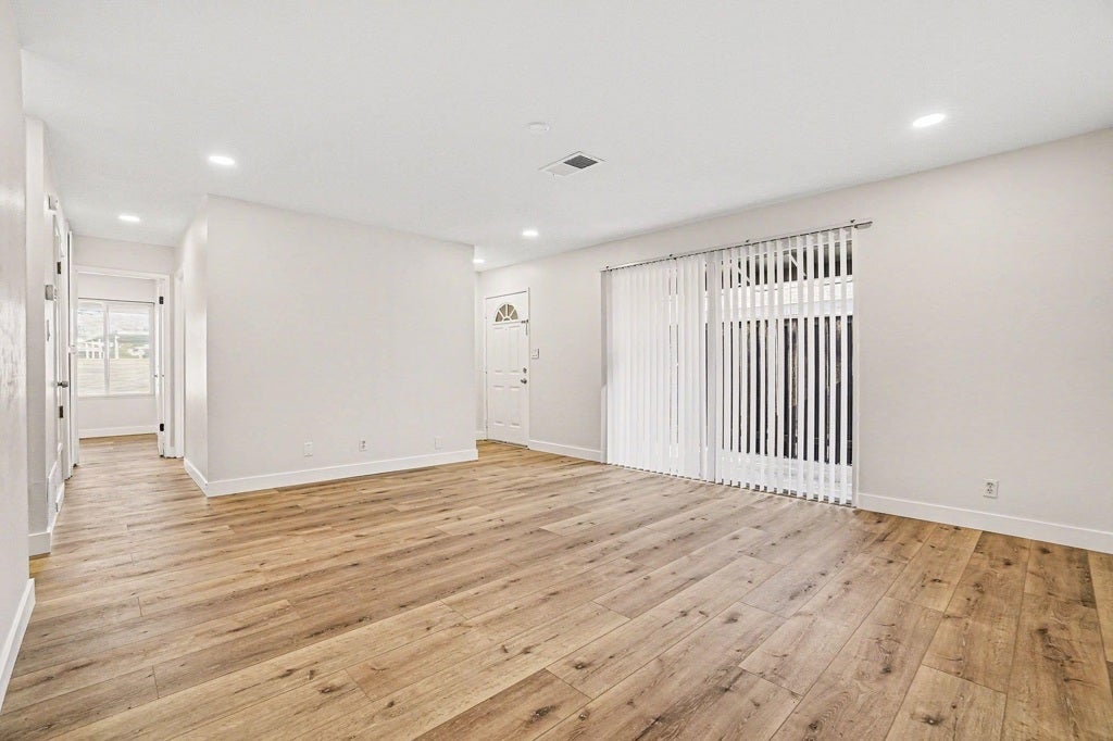 A gem of a ground floor condo just got remodeled for the new tenant to be. Stunning new luxury vinyl plank flooring, new paint and recessed lighting, plus new fridge and recently installed HVAC system for both heating and air conditioning. This unit is light and bright nice location, close to freeways and parks, shopping centers and schools. Held open 1/24/26 from 11-130pm
