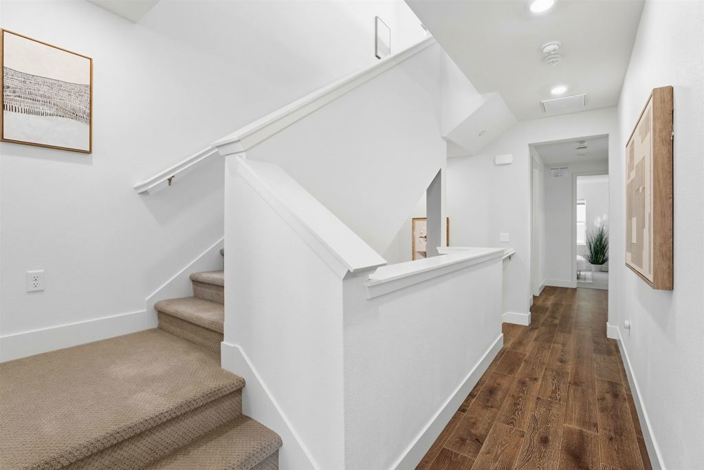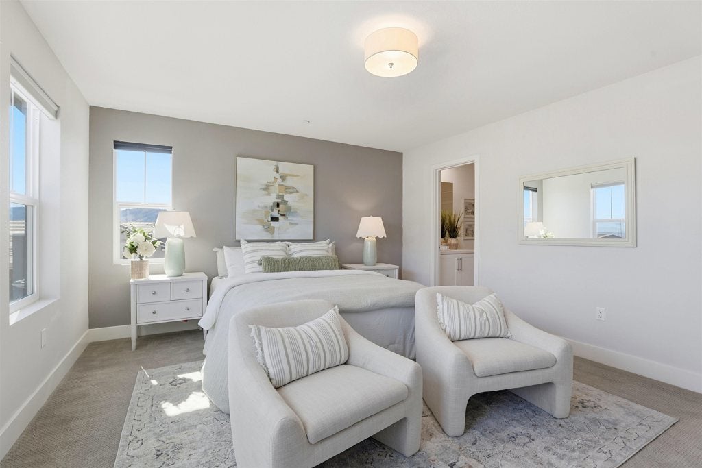 HOA fee reduced to $701/Month! Stunning home end unit Townhome style Condo, surrounded by VIEWS of local trails, in the highly desirable San Ramon Preserve! It's 4 beds, 3.5 bths & 2690sqft of living space. This home offers a thoughtfully designed floor plan perfect for modern living. open floor plan with a contemporary kitchen, quartz countertops, SS appliances, island with breakfast bar, Walk-in pantry. Upgraded engineered hardwood on the main level and upstairs hallway, with custom blinds totaling $30K. Second floor has a luxurious master suite with soaking tub, walk-in shower, and expansive walk-in closet. Second floor has 2 large bedrooms and a full-sized bathroom and laundry room for convenience. On the third floor, the fourth bedroom has its own ensuite bedroom/bathroom and cozy, sun-drenched loft, perfect as an in-law or guest retreat. Smart & energy-efficient features include tankless water heater, 2+ Zones heating & cooling, Ring doorbell, recessed lighting, and prewired EV charging port. Community amenities include pool, clubhouse, parks, bocce ball, firepit & BBQ areas – plus miles of rolling hill view walking trails. Located in top-rated San Ramon Valley USD, close to City Center, shopping, dining, 680 Freeway and downtown Danville, easy commute to silicon valley.