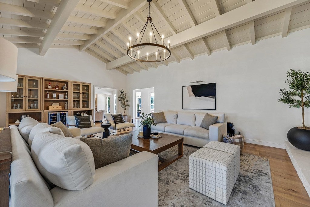 Welcome to this stunning single-story home in the heart of Round Hill Country Club, offering peaceful golf course views and an unbeatable location. Whether you’re enjoying your morning coffee or an evening cocktail, the backyard setting is the perfect place to unwind. A spacious 320 sq ft covered solarium patio allows for year-round outdoor dining and entertaining. Inside, you'll find 5 bedrooms and 4 full baths across 3,422 sq ft of thoughtfully designed living space. The kitchen features quartz countertops, a center island with bar seating, gas Dacor cooktop, double convection oven, and a cozy eat-in nook with views of the fairway. Vaulted ceilings in the living, dining, and great rooms add to the open and airy feel, while hardwood floors run throughout much of the home. The primary suite offers a spa-like bath with heated floors, jetted tub, dual vanities, and a large walk-in closet with built-ins. Additional features include a finished garage with epoxy flooring, EV charger, new front landscaping, and a quick golf cart ride to club amenities.