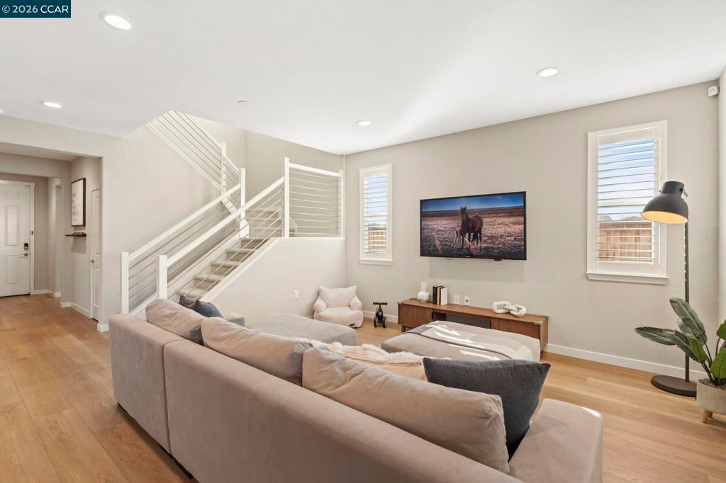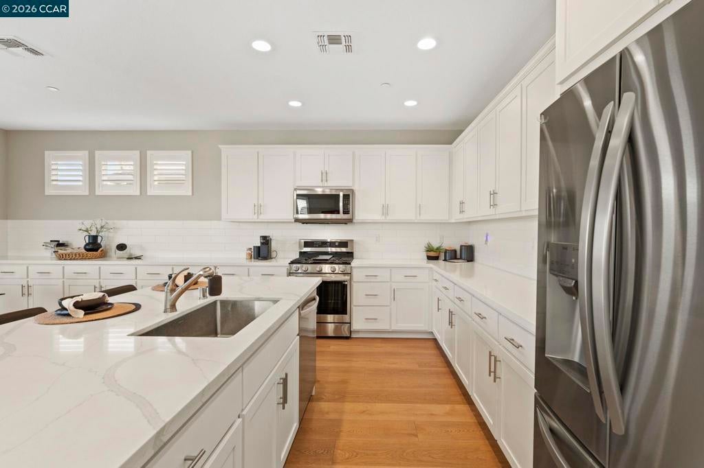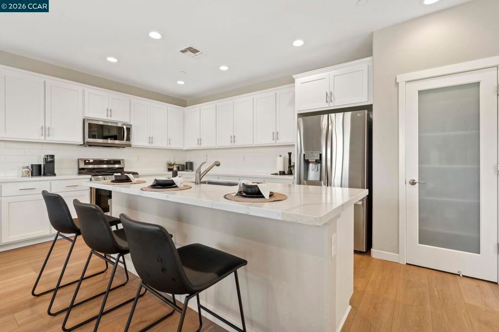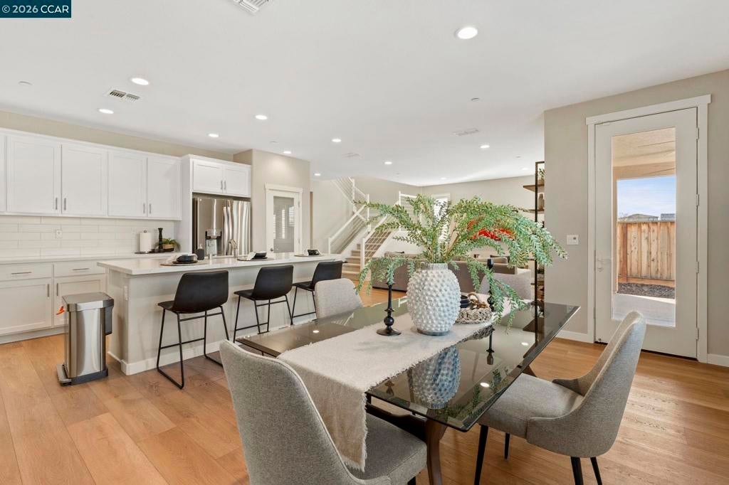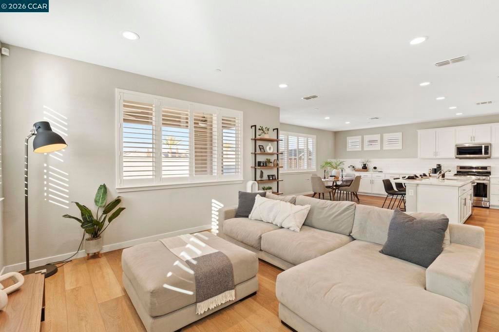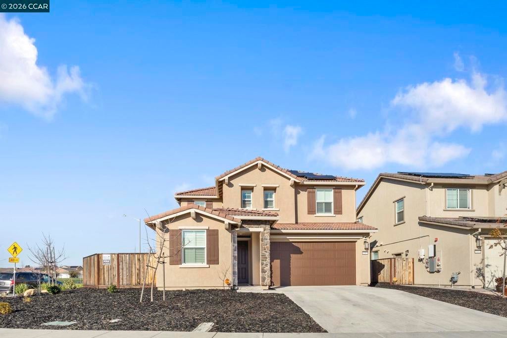 Welcome to this beautifully maintained newer home in one of Antioch’s most desirable neighborhoods. Built in 2021 with extensive builder upgrades, this 4-bedroom, 3-bathroom residence offers 2,240 sq ft of thoughtfully designed living space on a prime corner lot across from Bay Miwok Park, blending modern style with everyday comfort. The main level features an inviting open-concept layout where the living room and dining area flow seamlessly into the kitchen; perfect for entertaining or relaxed daily living. Luxury vinyl plank flooring runs throughout the downstairs, adding both durability and style. A downstairs bedroom sits adjacent to a full bathroom, ideal for guests, extended family, or a private home office. Upstairs, you’ll find plush carpeting, a spacious primary suite complete with a soaking tub, stall shower, and walk-in closet, plus two additional bedrooms and a full bathroom. An upstairs office space provides flexibility for remote work or study, while the large laundry room adds convenience right where you need it. Additional highlights include dual-pane windows, central heating and air, and a newly landscaped backyard ready for outdoor enjoyment. With its excellent condition, modern finishes, and ideal layout, this home checks all the boxes!
