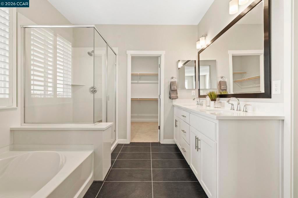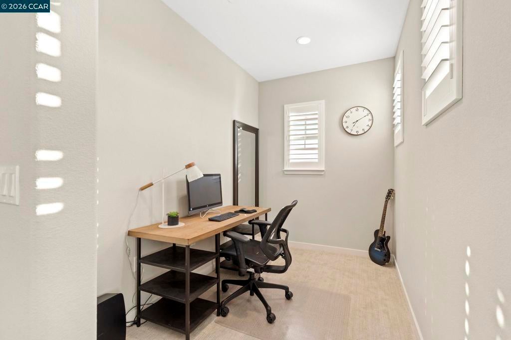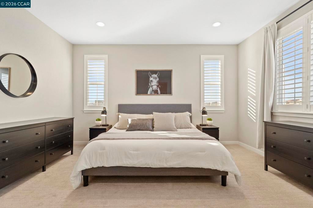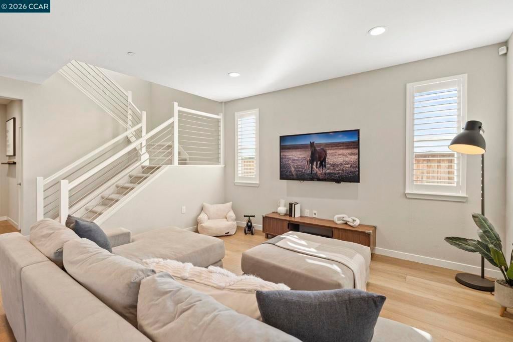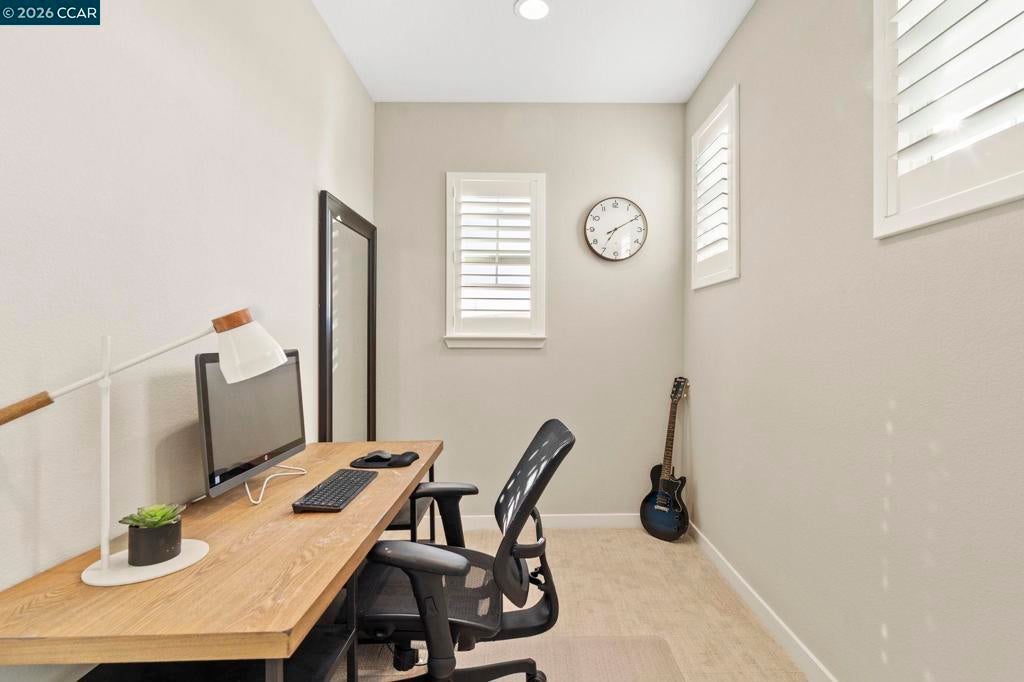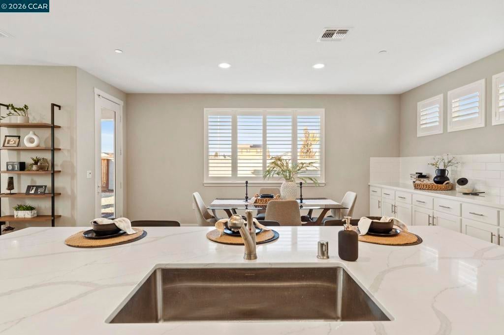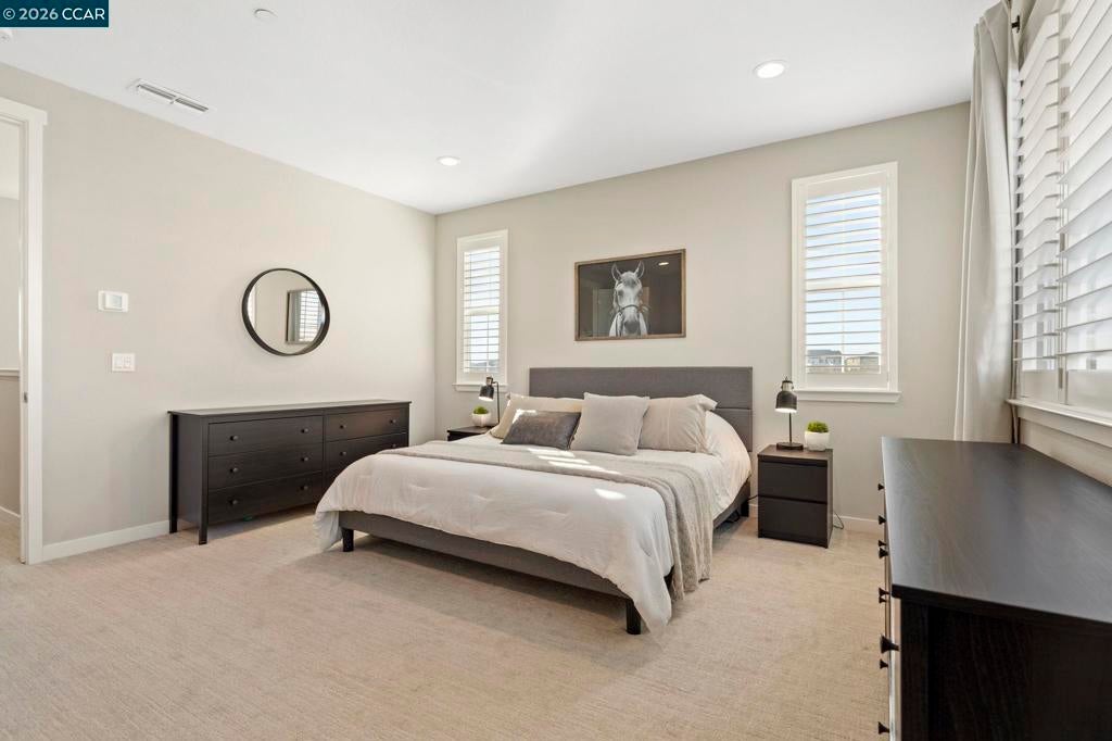 Welcome to this beautifully maintained newer home in one of Antioch’s most desirable neighborhoods. Built in 2021 with extensive builder upgrades, this 4-bedroom, 3-bathroom residence offers 2,240 sq ft of thoughtfully designed living space on a prime corner lot across from Bay Miwok Park, blending modern style with everyday comfort. The main level features an inviting open-concept layout where the living room and dining area flow seamlessly into the kitchen; perfect for entertaining or relaxed daily living. Luxury vinyl plank flooring runs throughout the downstairs, adding both durability and style. A downstairs bedroom sits adjacent to a full bathroom, ideal for guests, extended family, or a private home office. Upstairs, you’ll find plush carpeting, a spacious primary suite complete with a soaking tub, stall shower, and walk-in closet, plus two additional bedrooms and a full bathroom. An upstairs office space provides flexibility for remote work or study, while the large laundry room adds convenience right where you need it. Additional highlights include dual-pane windows, central heating and air, and a newly landscaped backyard ready for outdoor enjoyment. With its excellent condition, modern finishes, and ideal layout, this home checks all the boxes!