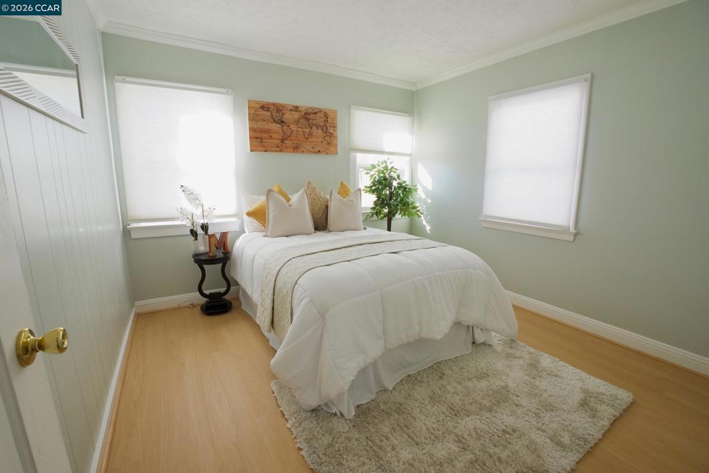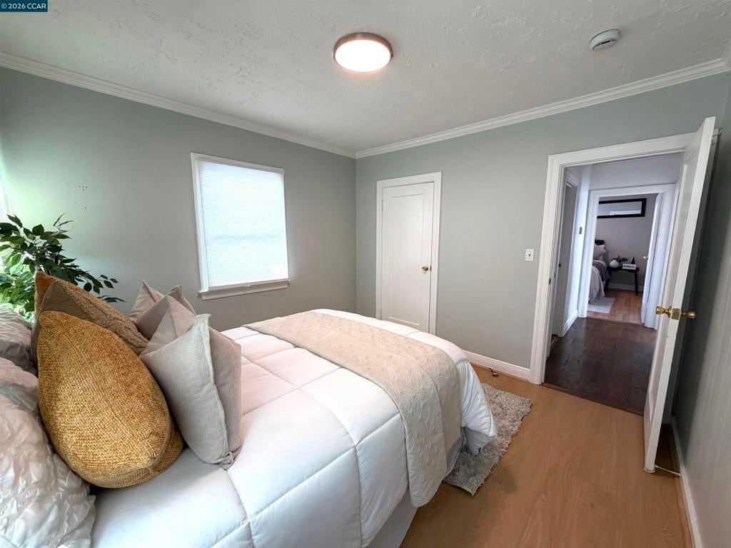 Cozy 2BD/2BA home offering 938 sq ft of living space on a 4,800 sq ft lot. Features a spacious living/dining combo and a gourmet kitchen with stainless steel appliances, quartz counter tops, and new porcelain tile flooring. Bright, well-sized bedrooms with abundant natural light. Long driveway for multiple vehicles and a large backyard with fruit trees, ideal for expansion or ADU potential. Convenient location with easy access to I-580/I-880 and walking distance to shops, restaurants, Bay Fair BART, and other public transportation.