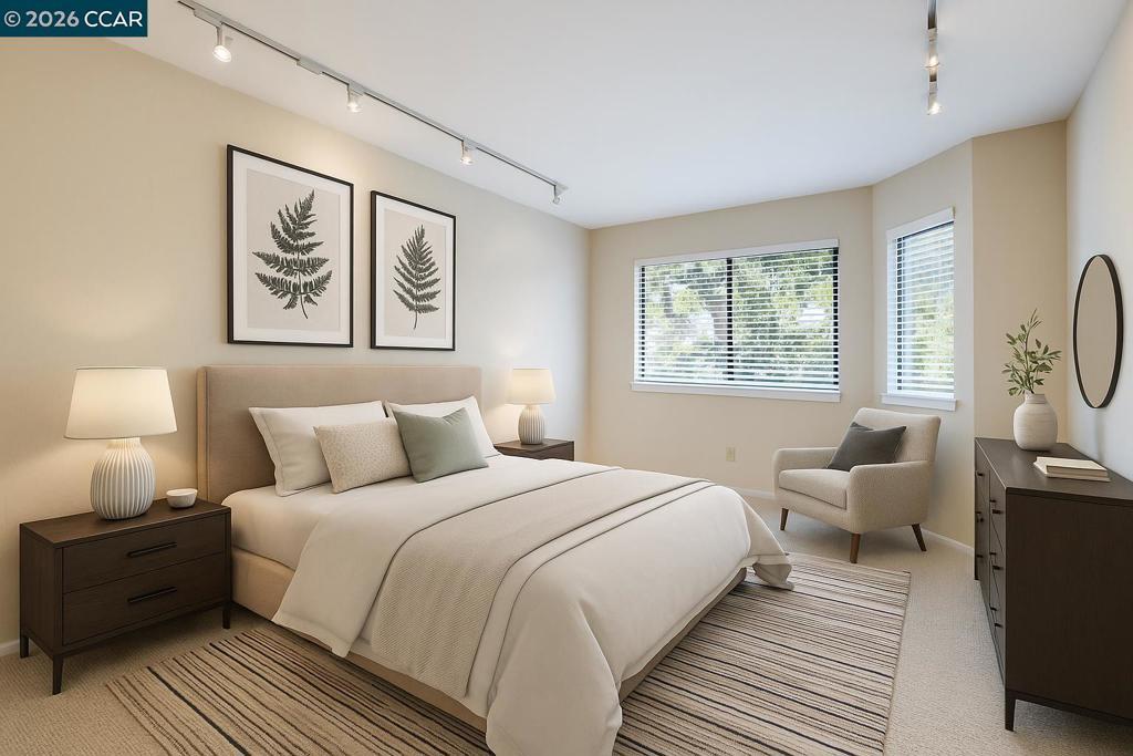 This updated beauty is in an attractive community surrounded by redwoods, walking paths, and tranquil fountains. A charming front patio creates a welcoming entry to this two-story townhouse-style condo. The desirable floor plan has an open kitchen overlooking the dining area and living room. Enjoy two spacious bedroom suites, both providing privacy and comfort. The primary suite features vaulted ceilings, dual closets, an updated bathroom, and a private balcony—a perfect spot to relax. Fresh interior paint, brand-new carpet, central heat and air, and inside laundry add modern convenience. Additional highlights include a hallway skylight that fills the space with natural light, interior access from the attached one-car garage, ample off-street parking throughout the community, and a community pool. This ideally located home is close to parks, schools, and major shopping and dining destinations including Sunvalley Mall, The Veranda, and Downtown Pleasant Hill, with convenient freeway access just minutes away.