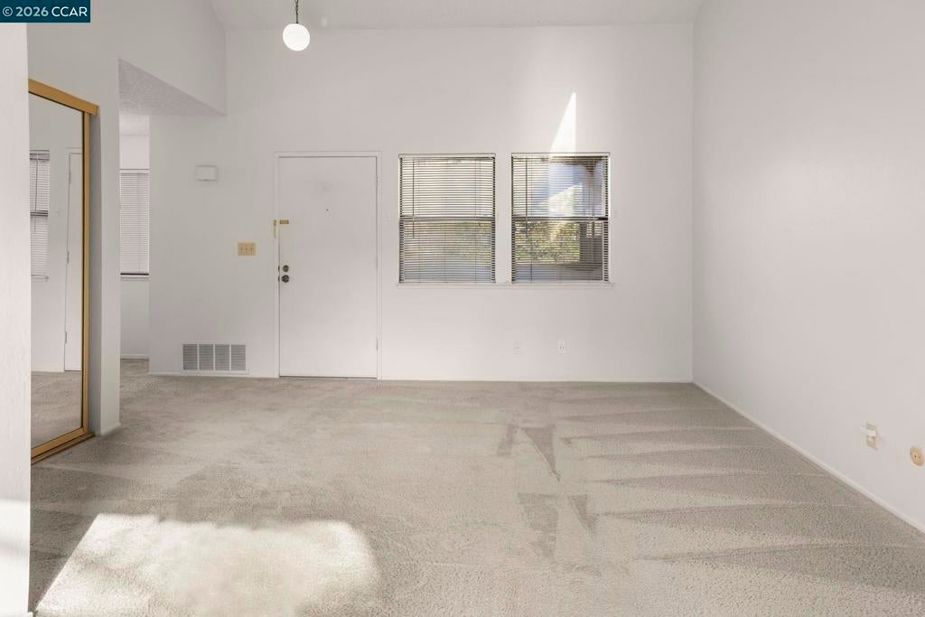 Second-story studio condominium with a private balcony and high vaulted ceilings that create an open, airy feel. The functional layout offers comfortable living space with abundant natural light and added privacy from the upper-level location. A dedicated laundry closet includes in-unit washer and dryer hookups for everyday convenience. Kitchen appliances are included with the property. The community is calm, quiet, and well maintained, featuring mature landscaping throughout the complex and very nice parking lot with guys parking available. HOA amenities include a community swimming pool, with tennis and pickleball courts. A neighborhood park and shaded children’s playground are directly across the street from the community entrance. Conveniently located in Pleasant Hill near shopping, dining, and daily essentials, including Sun Valley Mall. Easy access to Highways 680 and 4 makes commuting simple, while Diablo Valley College is just minutes away. The surrounding suburban neighborhoods reflect strong pride of ownership and a welcoming residential atmosphere. HOA dues include select utilities and contribute to the care of the grounds and lush greenery that define the community. An excellent opportunity for low-maintenance living in a desirable and peaceful area.