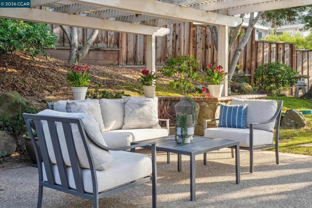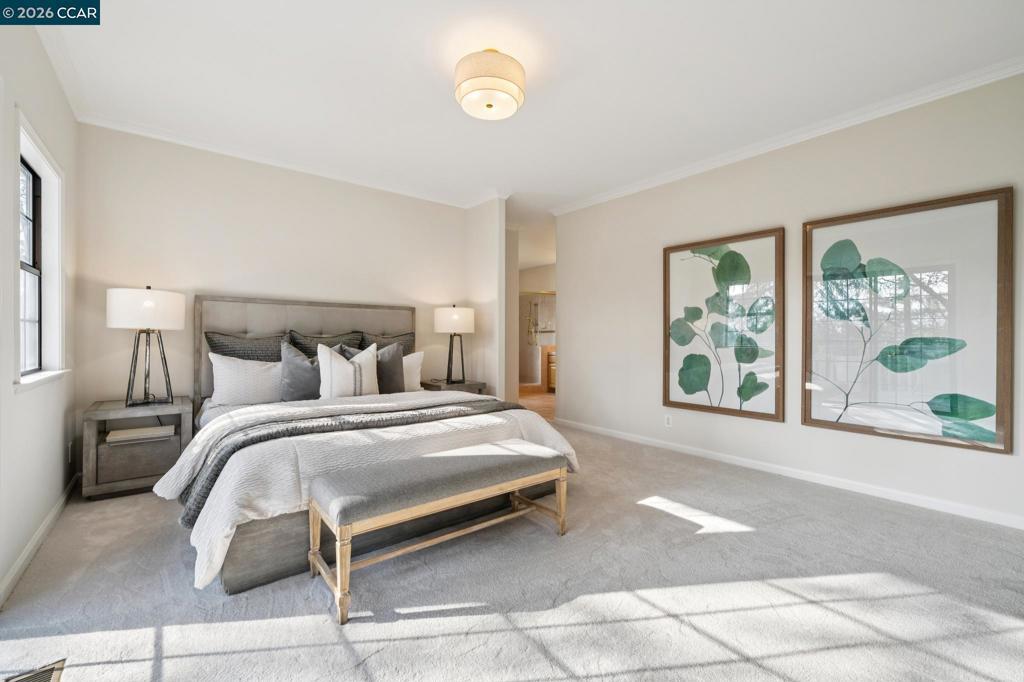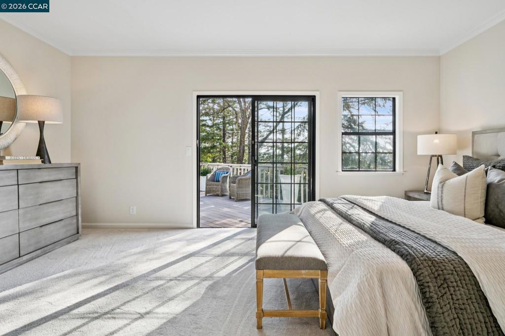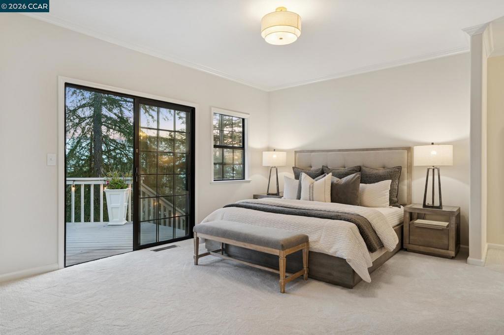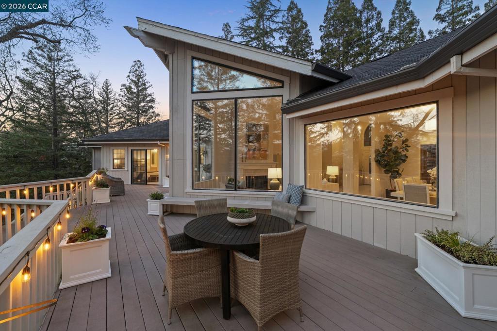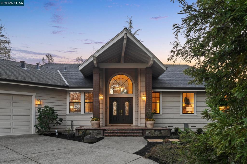 Rejuvenated single-story home with beautiful Las Trampas Hill views! Offering a well-designed floor plan with 5 bedrooms and 3 bathrooms, the home features a comprehensive interior refresh, including newly painted walls, ceilings, crown molding, baseboards, trim, all interior doors, and the front door. Upon entry, take in the stunning vaulted ceilings and lovely natural light, pouring in from the over-sized windows in the living room, looking out onto the expansive back deck. The kitchen showcases freshly painted cabinets, double oven and gas cooktop, perfect for entertaining. Complemented by new chandeliers, updated bathroom lighting, and new carpet throughout. The spacious primary suite includes a walk in closet, soaking tub, walk in shower and dual vanity. Exterior enhancements include a newer right-side yard fence, newly planted landscaping, and an updated backyard deck. The property provides exceptional privacy with no rear neighbors and a welcoming outdoor area ideal for alfresco dining directly off the kitchen. Additional highlights include 3- car garage, convenient proximity to the freeway and downtown Alamo, and newer HVAC systems. The absence of an HOA adds further flexibility for future ownership. Rare opportunity! Location, location!
