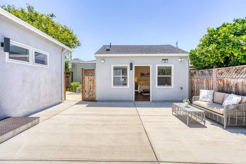 Gem in a serene, tree-lined neighborhood. Beautifully renovated 3-bedroom, 3-bath home plus a permitted fully detached 1-bedroom, 1-bath ADU with its own street address. The main house underwent an extensive renovation recently and features a bright, open-concept floor plan. The modern kitchen is outfitted with high-end finishes, sleek wine cooler, two sinks (a double and a large work sink in the island/breakfast bar), spacious pantry with soft-close cabinetry, and a versatile nook perfect for home office or second pantry. Each bedroom includes its own en-suite bathroom for ultimate privacy and convenience. Refinished hardwood floors, upgraded double-pane windows, and cordless blackout top-down/ bottom-up cellular shades add comfort and style throughout. The detached ADU offers complete independence with a full kitchen, separate washer & dryer, and private entry—ideal for guests, long-term rental, or multi-generational living. Enjoy low-maintenance front and back yards in a clean, peaceful, and quiet neighborhood. Conveniently located near downtown San Leandro, close to shopping, dining, major commute routes, and BART.