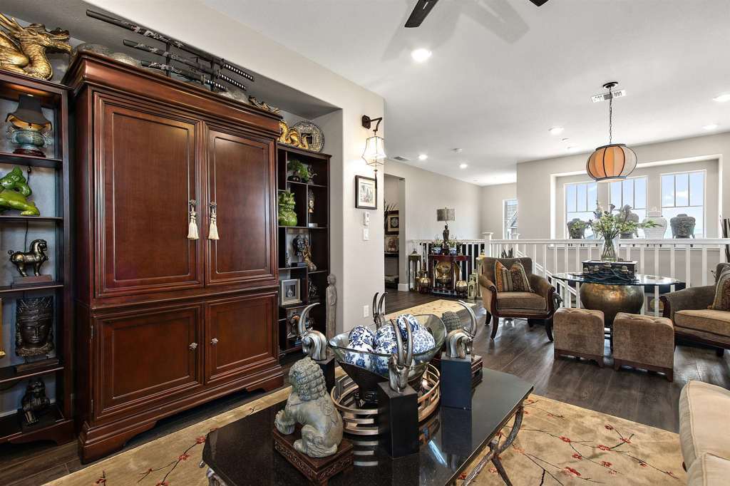 Tucked away inside a peaceful cul-de-sac in West San Ramon’s coveted Highlands Luxury Collection at The Preserve, this immaculately-maintained home blends comfort, style, and smart design. Step inside to find a versatile den, a light-filled Great Room, and a gourmet kitchen with a spacious walk-in pantry. The open-concept layout flows into the dining area and covered California Room—perfect for entertaining or relaxing. Upstairs, a spacious loft offers room to unwind, while the luxurious primary suite features a spa-like bath, walk-in closet, custom coffee bar, and tall linen cabinets. A spacious laundry room with utility sink. Designer upgrades include luxury vinyl plank wood floors, natural stone countertops and backsplash, crown molding, plantation shutters, three-tone paint, upgraded lighting, ceiling fans, KitchenAid mixer lift, roll out drawers, and Smart Home features powered by Alexa®. The backyard is a private retreat with premium artificial turf for low-maintenance living. Builder-installed Solar! Pre-wired for electric vehicle. Enjoy resort-style amenities including a clubhouse, pool, and nearby sports park—all within a vibrant community close to top-rated schools, shopping, The City Center, Costco, restaurants, and scenic trails. Less than two miles to 680 freeway!