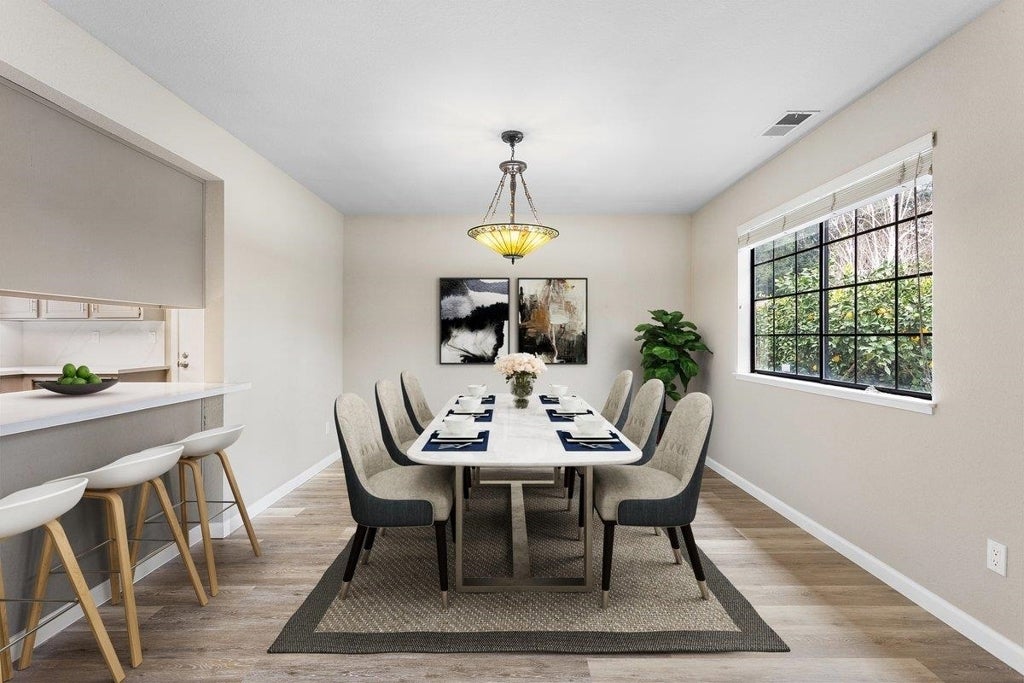Charming and lovingly remodeled duet is just a 10 minute walk to downtown! Don’t miss this opportunity to enjoy all the pleasures of downtown Pleasanton, from Saturday morning Farmers Market, concerts at Lions Wayside Park, excellent dining and year round activities at the Alameda County Fairgrounds. Highly desirable single story unit in the quaint, private and quiet Tiffany Lane neighborhood features 2 bedrooms plus an optional extra room with an accordion wall. 2 full baths and 2 patios. New paint and luxury vinyl flooring throughout. Kitchen has been updated with painted cabinets, new hardware, new sink, new appliances and quartz countertops. Several of the kitchen cabinets & pantry have custom pull-out drawers. Large indoor laundry room includes washer and dryer. 2 car attached garage. HOA of $301 includes hazard insurance and common area maintenance. Close to schools, parks and shopping this lovely home is centrally located for all your wants and needs. Don’t miss this one!