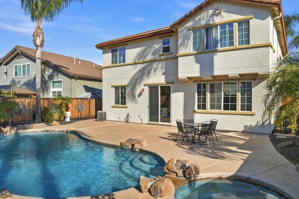 Step into a beautifully maintained home set in a welcoming, established neighborhood where comfort and style come together effortlessly. The updated kitchen shines with sleek finishes, a spacious breakfast bar, and eye-catching tile backsplash-perfect for both everyday living and entertaining. An open, light-filled living area features a cozy fireplace and custom cabinetry, creating a warm and inviting focal point for gatherings or quiet evenings in. The tranquil primary suite offers a peaceful retreat designed for rest and relaxation. Outdoors, your private backyard oasis awaits, complete with a sparkling pool and soothing spa, ideal for hosting friends or enjoying laid-back weekends at home. This is a rare opportunity to own a home that truly has it all!