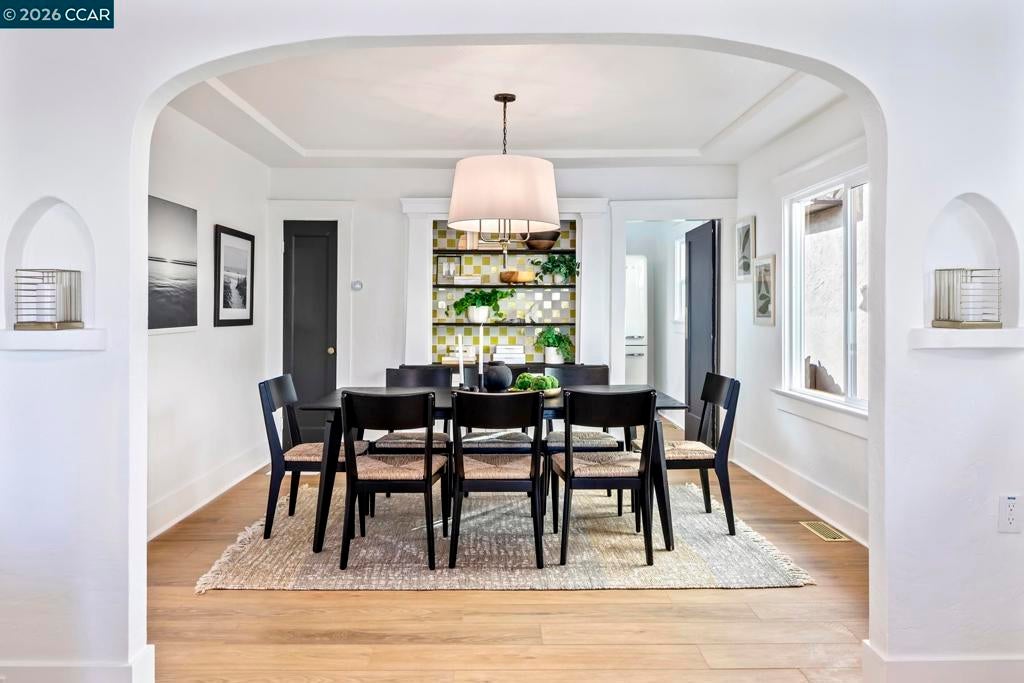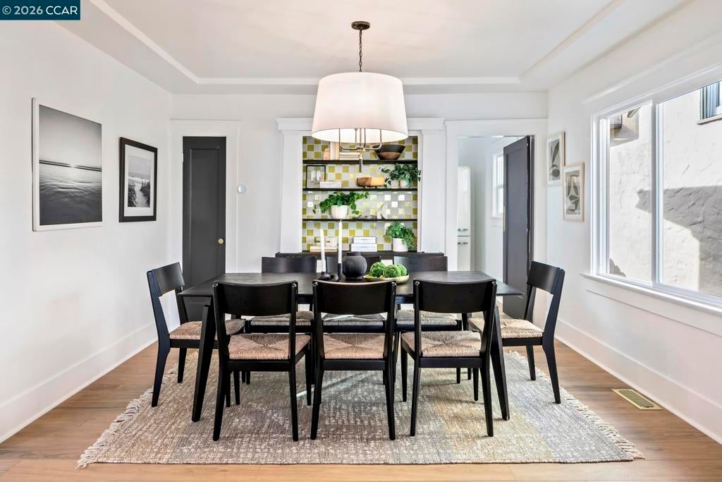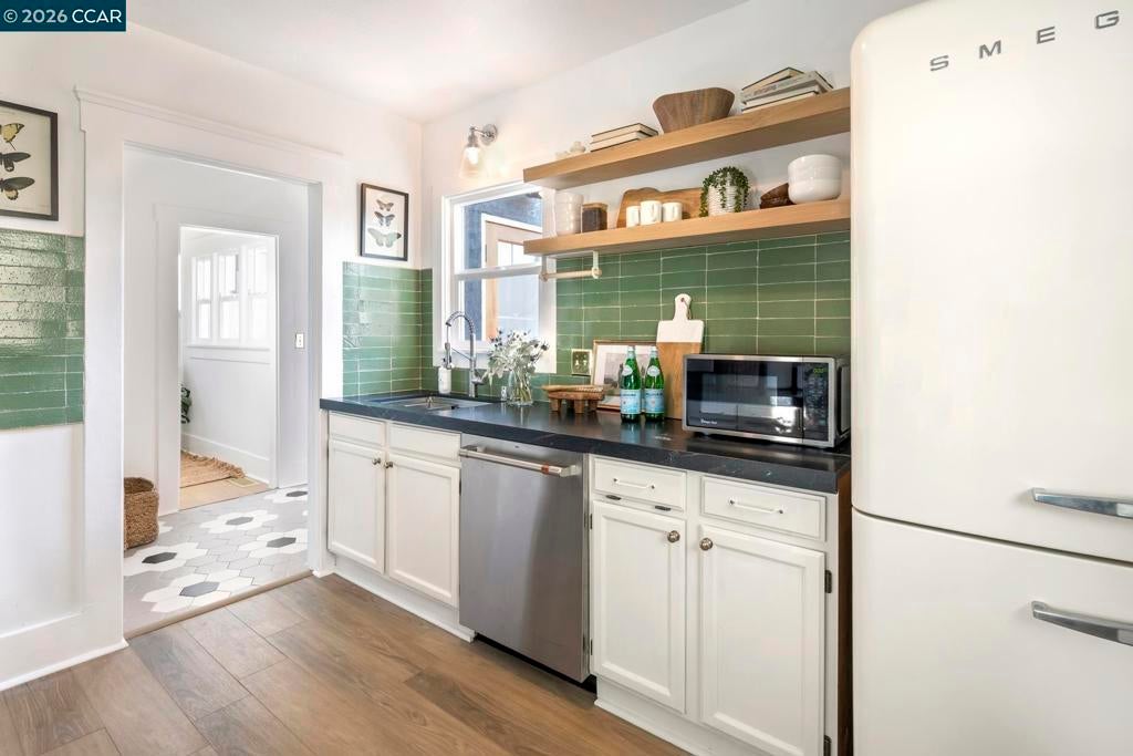 Ideally located just one block from Solano Avenue, this Albany home blends classic charm with thoughtful modern updates. The 3-bedroom, 1-bath residence has been extensively renovated since 2024, including the kitchen, bathroom, and new flooring. The kitchen features honed Nero Mist granite countertops, a Smeg refrigerator, Samsung gas range, Café dishwasher, and a Fireclay Tile backsplash, complemented by refined custom finishes. Heath Ceramics tile adds character to the dining room and fireplace hearth, while a wood-burning fireplace anchors the living space. The bathroom offers a marble countertop, Kohler plumbing, and polished chrome fixtures. Additional upgrades include all new windows, Marimekko hallway wallpaper, and new brass hardware throughout. A Nest thermostat, EV charger, and LG washer and dryer add everyday convenience. A dedicated office and a separate, fully renovated studio/office/flex space completed in 2026 provide exceptional versatility. Outdoor living includes a welcoming front porch, Trex deck, and flat, gated backyard with lawn, exterior fireplace, greenhouse, and raised garden beds. Quietly set yet well connected with easy BART and freeway access, steps to Solano Avenue shops, cafés, and restaurants; short distance to Cornell Elementary and Albany High.