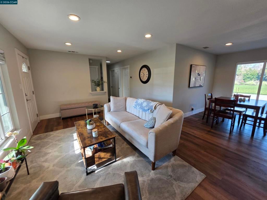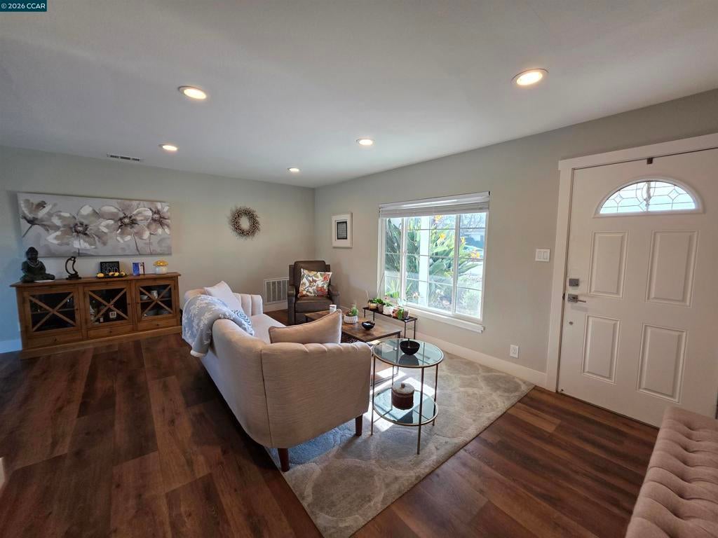 Beautifully updated 3 bedroom, 2 bath home in Gregory Gardens with solar. Fully or partially furnished if desired, with huge family room, bonus space for office, plus formal living room and dining area. Gas range, newer dishwasher, fridge, and washer/dryer are included. Gorgeous renovated main bathroom and newer insulated garage door and opener. Light and bright with extra-large backyard with grassy area and mature fruit trees. Central heat and air conditioning. Home is assigned to top rated Strandwood Elementary. Close to shopping, restaurants, downtown Pleasant Hill and the large community park. Quick access to freeways and BART. Apply with RentSpree https://apply.link/-QGpZso