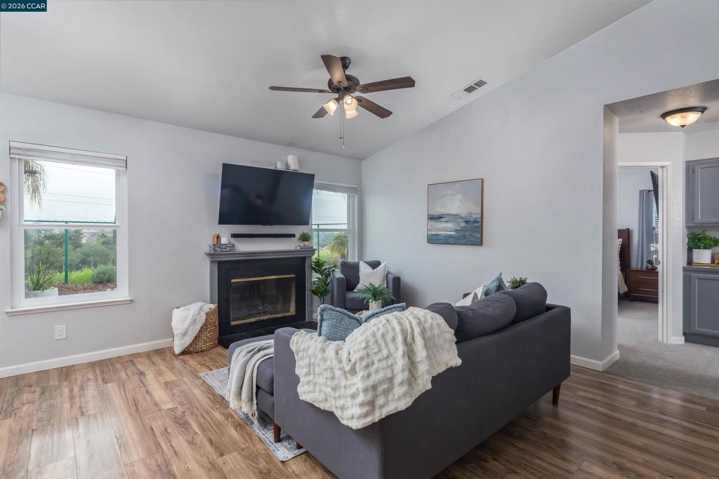 Welcome to this charming single-story home tucked away on a quiet court with no rear neighbors & $65,000 in recent upgrades. Thoughtfully updated & meticulously maintained, this 3-bedroom, 2-bath home offers 1,321 sq ft of living space that feels much larger thanks to tall ceilings & abundant natural light. The formal living & dining area welcomes you in, while the updated kitchen with stainless steel appliances, new countertops, & opening to a cozy family room with fireplace is perfect for everyday living & entertaining. The spacious primary suite includes a custom closet, brand-new carpet, & a beautifully updated en-suite bathroom with dual-sink vanity. Two additional bedrooms with new carpet & generous closets, plus a refreshed hall bathroom, complete the interior. Don't overlook the $19,500 in new interior windows throughout & glass slider. The private backyard is a true highlight, featuring another $20,000 in upgrades including low-maintenance landscaping, new drip system, artificial turf, new fencing, pergola, & peaceful views of Mt Diablo. Conveniently located near parks, walking trails, schools, shopping, dining, Costco, & easy freeway access. With extensive upgrades and an unbeatable location, this home offers exceptional value. Open House Sat 1-4pm & Sun 12-3pm.