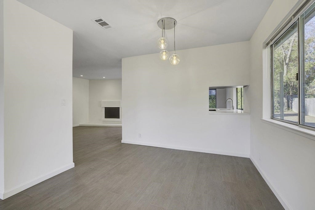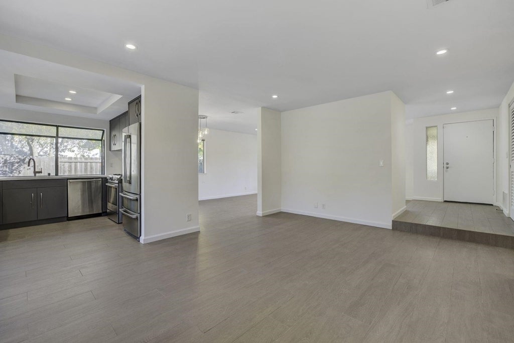 This single-level mid-century home is well situated in the desirable Twin Creek Estates neighborhood, offering a thoughtful floor plan with an easy, natural flow. The home includes three bedrooms, two remodeled bathrooms, and a remodeled kitchen-breakfast room. Porcelain tile flooring extends throughout the home, beginning at the entry and continuing into the main living spaces. The entry opens to both the living room and family room, with a dining ell extending naturally from the living room. The eat-in kitchen features stainless steel Bosch appliances and opens to both the family room and the backyard. Large windows bring in natural light, and the kitchen provides direct access to the patio and garden. Adjacent to the kitchen, the family room features an angled wall that adds subtle architectural interest, along with a generous window and direct access to the backyard and spacious patio area. Additional features include a two-car garage with interior access. Close proximity to parks, running trails, shops, restaurants, and convenient freeway access completes this home available for lease.