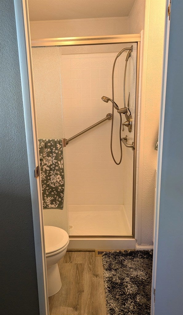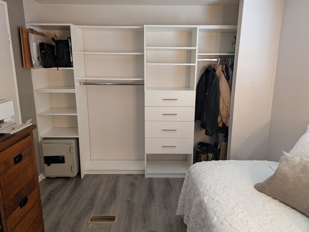 Rare find - Great unit in quiet location! Enjoy 1-story living in this beautiful 1992 manufactured home, plus inviting front porch. Very well maintained unit with open floor plan. Light and bright. Vaulted ceiling, newer luxury vinyl plank flooring throughout, walls and ceiling are textured, 6-panel interior doors, newer LED lighting, custom cupboards in the laundry room and closet organizers in both bedrooms. Inviting living room with ceiling fan and arched windows looking out to front porch. Functional kitchen with LED lighting, lots of white Shaker style cabinets with pull-out drawers, stone counter tops and glass tile backsplash. White gas stove, dishwasher and side-by-side fridge. Master bedroom features large closet with mirrored sliding doors and custom closet organizers. Adjoining bathroom with tiled shower over tub, oversized sink vanity with large mirror. Extra bedroom/office with large window and custom closet organizers. Hall bath with extra large easy to walk in shower. Extra large laundry room with newer full-size washer and dryer (included). Newer custom cabinets for lots of storage. Covered 2-car carport. Park maximum capacity “Tuff” storage shed. Equipped with electrical, shelving and windows. Small backyard area, fenced, for planter boxes or dog run. Fireplaces: NO