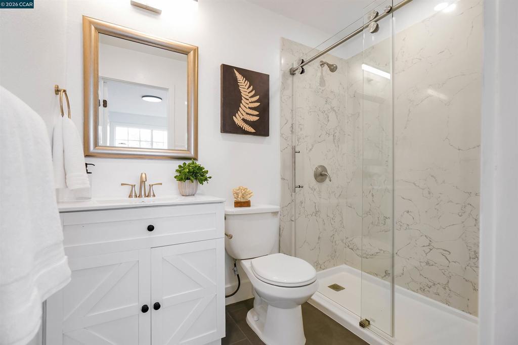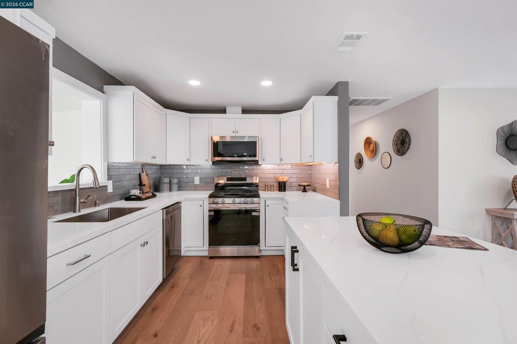 Welcome to this stunning 3-bedroom, 2-bath fully remodeled home nestled in the desirable Pinole Valley neighborhood. Thoughtfully updated from top to bottom, this home blends modern design with comfortable living. The heart of the home is the brand-new kitchen, featuring crisp white cabinetry, quartz countertops & island, stainless steel appliances, and a clean, contemporary backsplash—perfect for entertaining and daily living alike. Wide-plank flooring, recessed lighting, and tasteful finishes carry throughout the home, creating a bright and cohesive feel. Both bathrooms have been fully renovated with sleek vanities, modern fixtures, and designer stone, offering a spa-like experience. The bedrooms are well-proportioned, filled with natural light, and provide flexible space for family, guests, or a home office. Step outside to enjoy an EXPANSIVE backyard, ideal for gatherings, play, gardening, or future expansion. Fresh new sod, landscaped pathways, and a generous outdoor layout make this space both functional and inviting. Ideally located near grocery stores, coffee shops, fitness centers, parks, and schools, with easy access to I-80 and nearby commuting routes, this home offers the perfect balance of neighborhood charm and everyday convenience. A true turnkey opportunity!