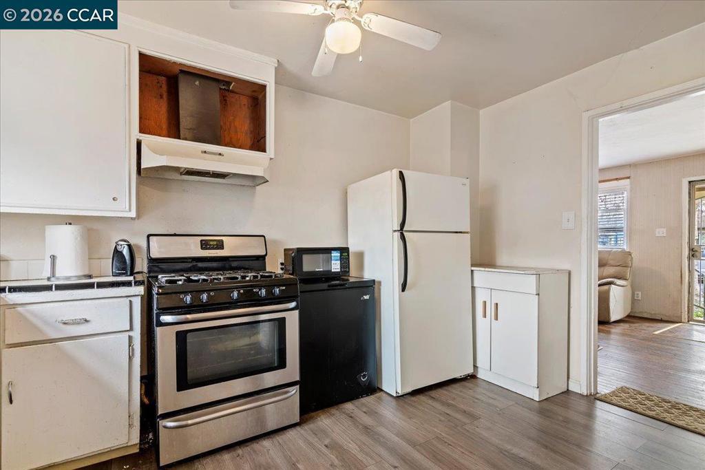 This home offers a great opportunity to add value and make it your own. Originally a 2-bedroom, 1-bath home with a garage, it has been converted to a 3-bedroom layout, adding approximately 270 sq ft for a total estimated living space of 1,117 sq ft. The exterior was updated with stucco a few years ago, and a new roof was installed this year, providing a solid starting point for future improvements. The property backs to the Pittsburg High School ball field and features a tall cement wall for privacy. Ideal for buyers looking for potential, customization, and a chance to create a home that fits their vision.