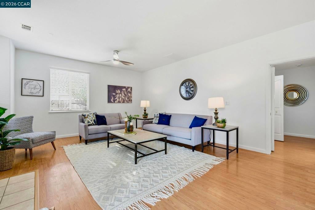 Welcome to this fabulous home offering 4 bedrooms and over 2,580 sq ft of comfortable living! Nestled in a desirable, quiet neighborhood and conveniently nearby schools, this beautifully updated residence is truly move-in ready. The home features a freshly painted interior, brand-new carpet, and generously sized bedrooms, each with new ceiling fan/light fixtures. The main living area showcases an open kitchen with beautifully refinished cabinetry accented by stylish new hardware and brand-new stainless steel appliances. The kitchen flows seamlessly into the adjacent dining area and spacious family room, filled with abundant natural light, vaulted ceilings, and a cozy fireplace—creating an ideal great room for everyday living, entertaining, and relaxation. The spacious primary suite includes dual sinks and an updated stall shower. Additional highlights include new window blinds throughout, new bathroom light fixtures, and new ceiling fans in all bedrooms and the living room. Step outside to enjoy easy, low-maintenance landscaping with a garden area and few mature fruit trees—perfect for year-round enjoyment. The two-car garage with additional drive-through access door to the backyard, ideal for parking a boat, work vehicle, or extra storage.