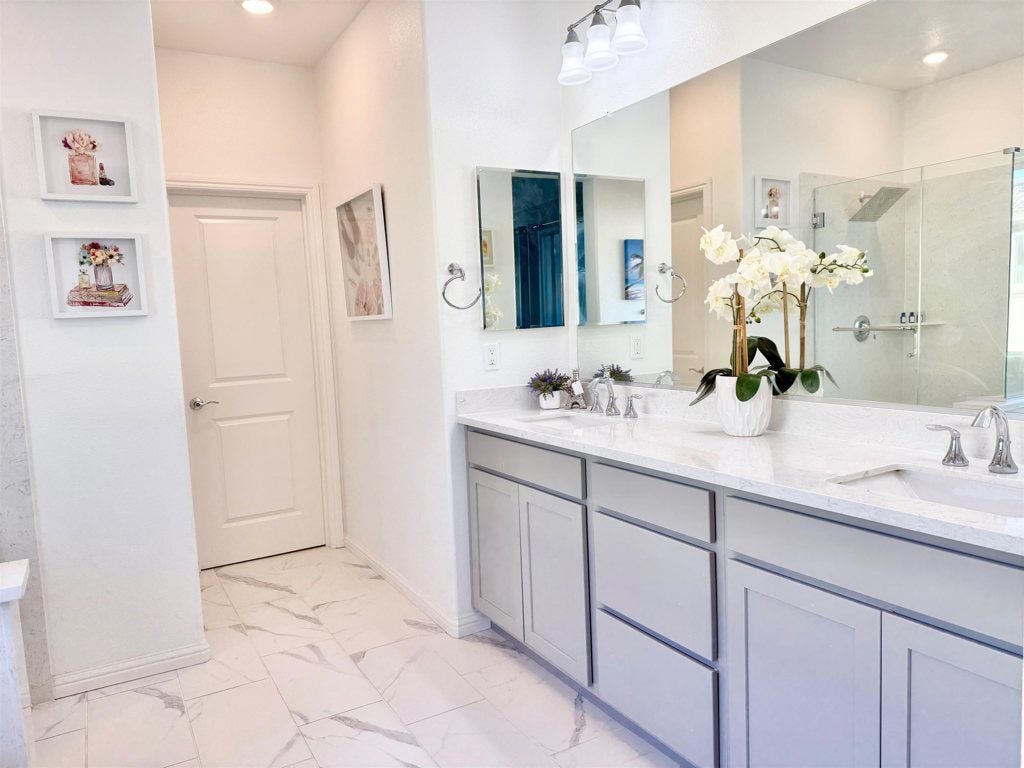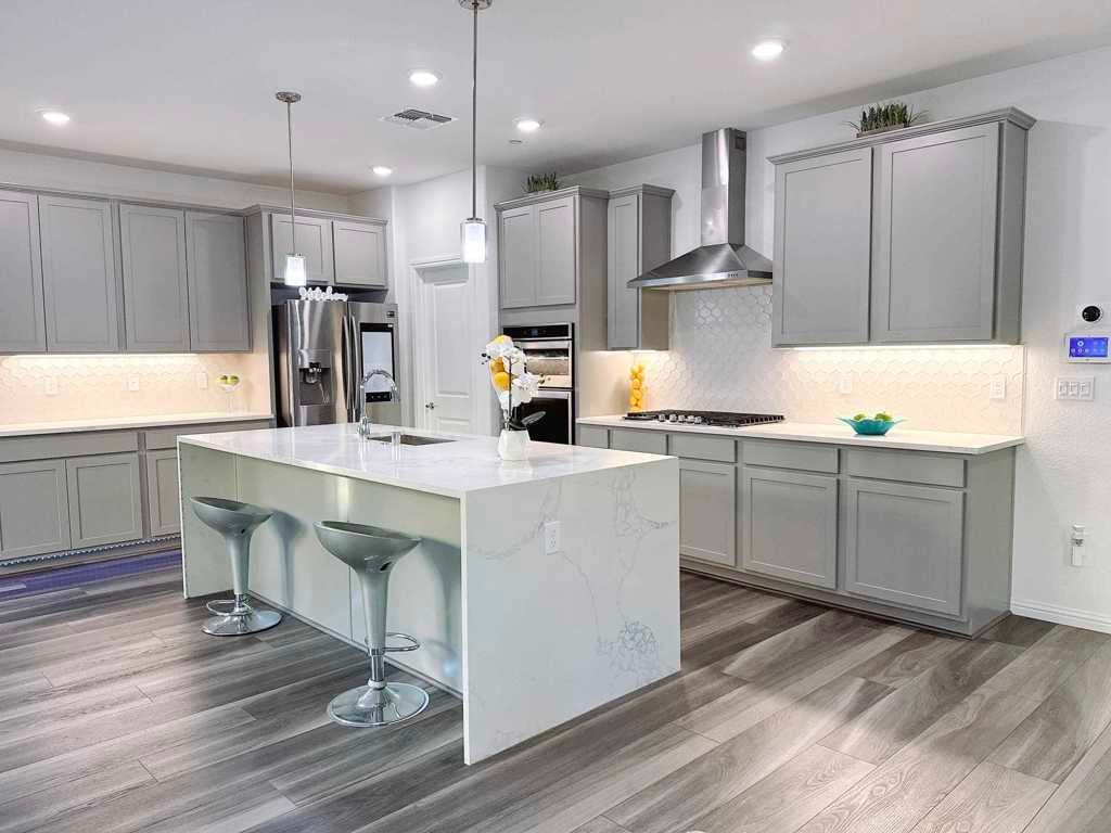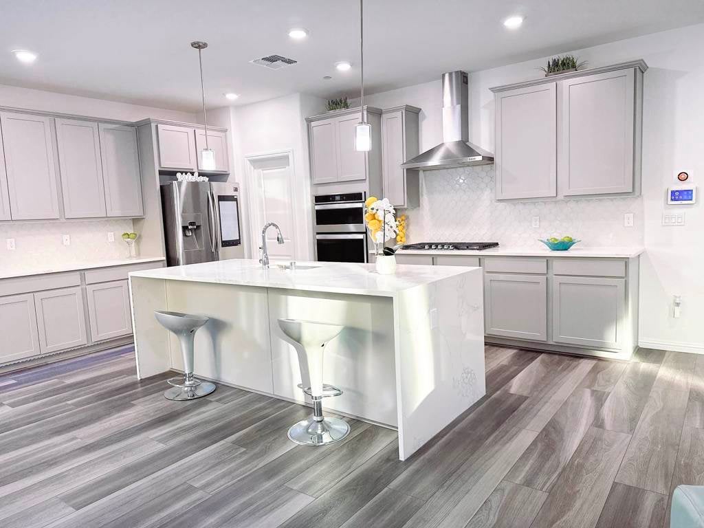 This stunning Pulte Lakeview plan home, built in 2021, feels like new and is located in the heart of Brentwood—just minutes from top-rated schools, parks, shopping plazas, grocery stores, and popular restaurants. Spanning 2,713 sq. ft., this home offers 4 spacious bedrooms, including a luxurious primary suite with a spa-like en-suite featuring a soaking tub, walk-in shower, and dual vanities. Most additional bedrooms boasts walk-in closets, providing ample storage space. A spacious den/office with elegant double French doors and a charming loft offer additional versatility for work or relaxation, which can also upgrade to a bedroom. The gourmet kitchen is a chef’s dream, featuring upgraded gray shaker cabinets, a stunning quartz waterfall island, a gorgeous backsplash, and a massive walk-in pantry. A cozy playroom under the stairs adds a delightful touch, or it can serve as extra storage. Upgraded luxury vinyl plank flooring flows throughout the home, complemented by plush, memory foam-padded carpet in all bedrooms. The home also features enhanced LED down lighting, PAID SOLAR, and a Tesla Wall Charger—perfect for energy-efficient living. With over $100K in upgrades, this home is the perfect blend of modern elegance and convenience. Don't miss the opportunity to make it yours!