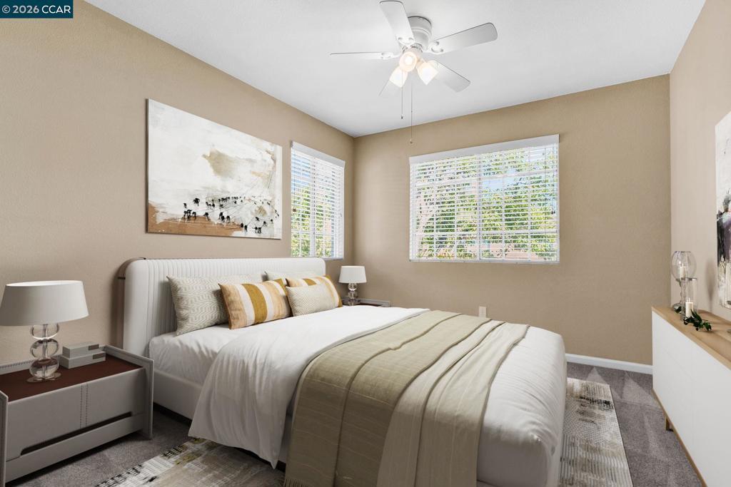 Exquisite end unit townhouse on a quiet cul-de-sac with no one behind you offers 4 bedrooms, 2.5 baths, 1912 sq ft, 2 car garage with epoxy flooring and beautiful serene backyard. Updated kitchen boasting granite counters, stainless steel appliances, gas range, breakfast bar, and slider leading to the expansive, private creekside decking. Family room with cozy fireplace with lush view of open space beyond deck. Wood floor on the first floor and one of the bedrooms and new earth tone carpeting on the rest of the bedrooms. Private master suite with large master bath and walking closet overlooking the lush creekside setting. Low HOA due of $228/ mo offers community pool and front landscaping. Excellent schools, easy access to 680, parks,shoppings, restaurants, Costco, city center and so much more...