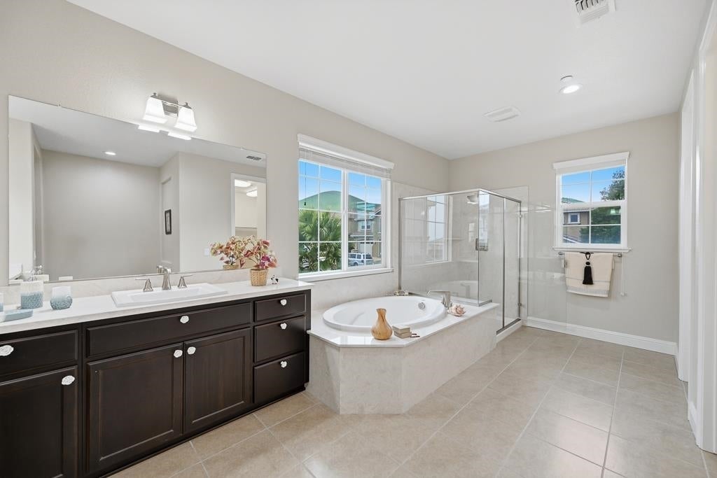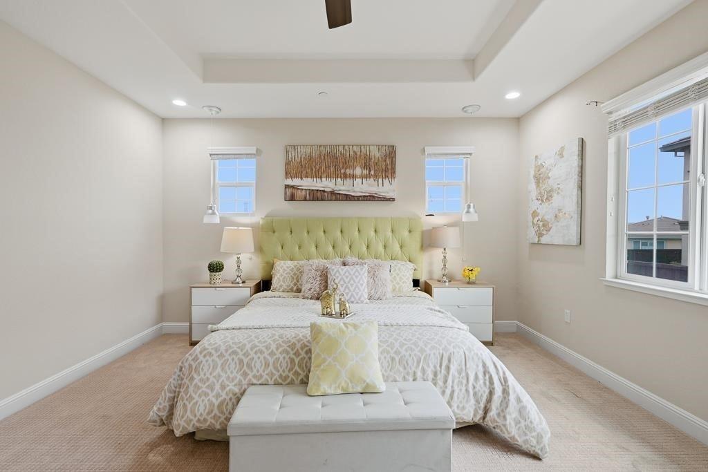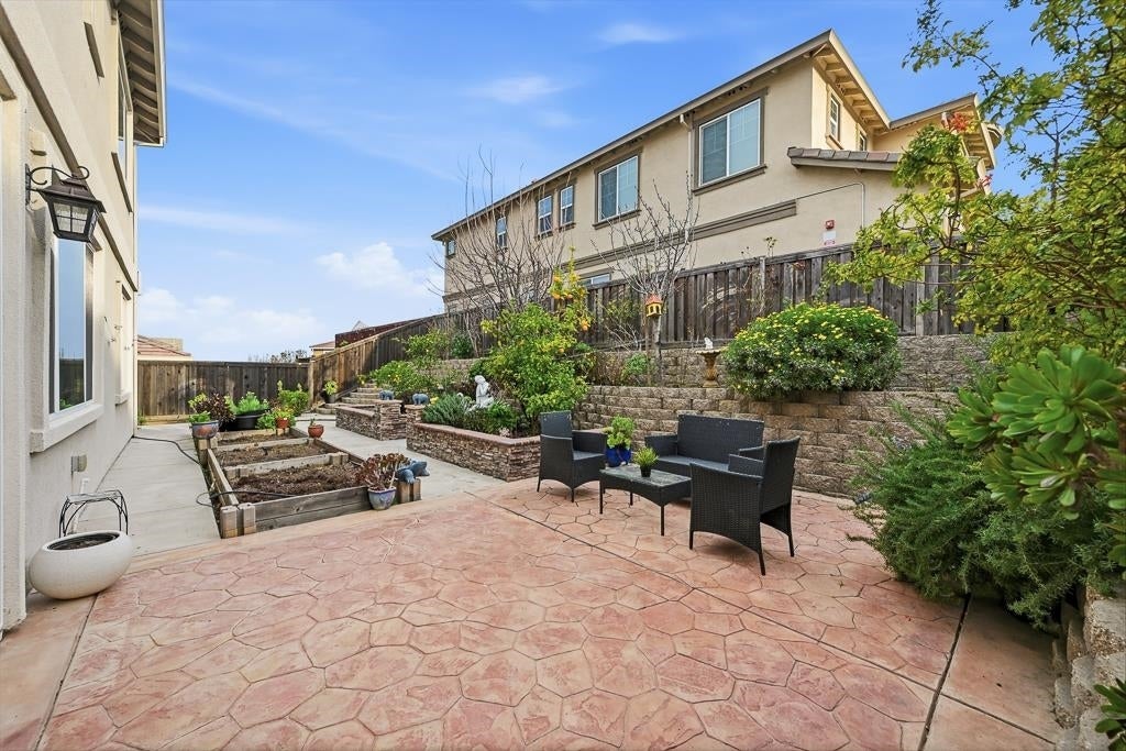 Nestled in the serene San Marco hills, this elegant 2016-built residence features one of the community’s most coveted floor plans, boasting 5 spacious bedrooms and 3.5 bathrooms. The rare and versatile layout is highlighted by Double Primary Suites—one on each level—offering an ideal solution for multi-generational living or a grand guest retreat. Inside, soaring high ceilings and an abundance of natural light showcase a stunning open-concept design, anchored by a gourmet kitchen with premium granite countertops, a walk-in pantry, and a charming breakfast nook. The interior flows seamlessly to an expansive upstairs loft and a beautifully updated, professionally landscaped backyard that serves as a private "edible garden" oasis, featuring a prolific variety of fruit trees including Apple, Grape, Pomegranate, Orange, Lemon, Persimmon, Dragon Fruit, Chinese Jujube, and three Cherry trees. Situated just minutes from the brand-new Shoppes at San Marco (Sprouts, Starbucks, and dining) with effortless access to BART and major freeways, this home perfectly balances hillside tranquility with modern urban convenience.