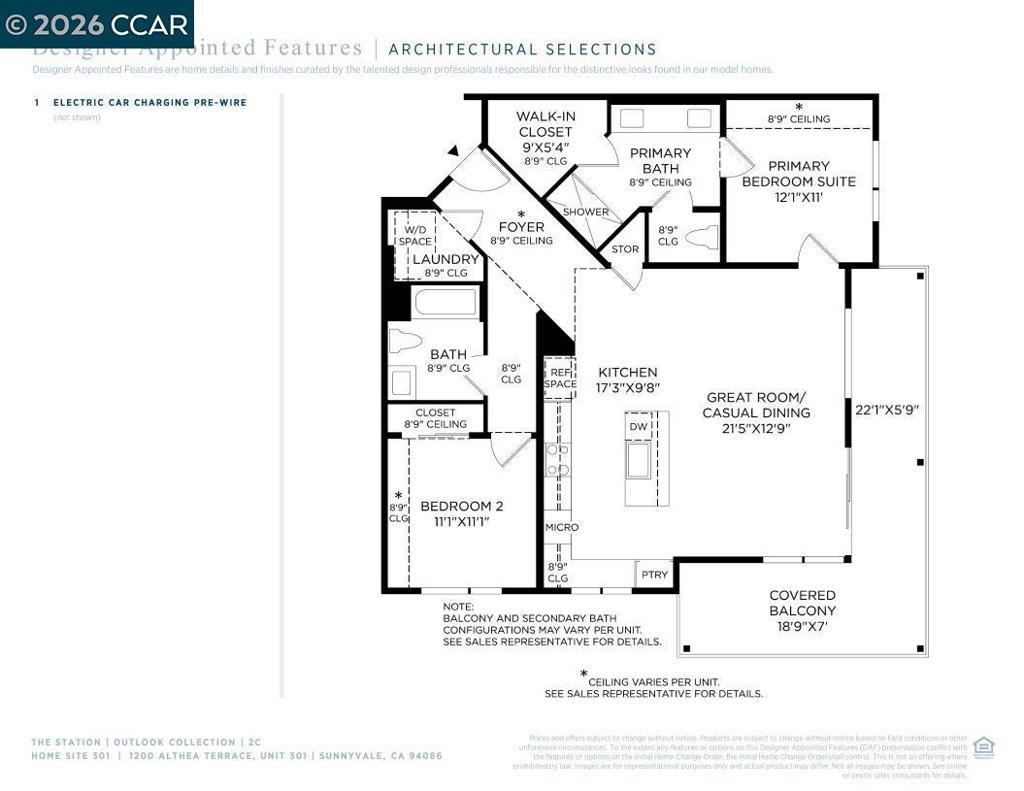 Discover luxury living in the heart of Silicon Valley. New Condos in Sunnyvale, Outlook at The Station features a sought-after location that puts you close to every want and convenience. Desirable corner location home. Stylish kitchen features Energy Star KitchenAid stainless steel appliances, modern shaker style cabinets with soft close doors an drawers, quartz counter tops and design tile backsplash. 10-foot ceiling, and upgraded LVP flooring flows throughout the main living area. An expansive covered balcony off the great room serves as the perfect area for entertaining guests or relaxing with family. Easily accessible laundry with Whirlpool front-load washer and dryer. Convenient reserved 2-car parking space with a pre-wired electric car charger. Resort-style amenities include pool, indoor/outdoor lounge area, fireplace, dog wash, dog park, co-work mezzanine, entertainment lounge, fitness center, courtyard, playground, walking paths and expansive lawns. Vantage At The Station is located near Santana Row, Valley Fair Mall, Shopping Centers. Close to VTA Light Rail, Lawrence Caltrain and Bart. (photos not of actual home)