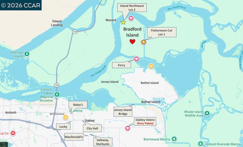 15 acres of vacant waterfront land on Bradford Island offered as Tenancy-in-Common (TIC) ownership with a minimum 10% interest; price reflects a 10% share. Intended for long-term, multi-generational use, the property is ideal for families or groups seeking a shared Delta retreat for camping, fishing, boating, and year-round outdoor recreation. Located along Fishermans Cut, the property includes approximately 326 feet of water frontage with existing pilings suitable for construction of a new floating dock. Open land allows for trailers and flexible short-term camping layouts, with ample space to spread out campsites while maintaining privacy. The setting supports shared traditions, family gatherings, and ongoing outdoor enjoyment, with room to adapt to evolving needs over time. A rare opportunity to co-own a large Delta waterfront property at a fraction of the cost of sole ownership. Brochure available via disclosures or upon request—contact the listing agent.