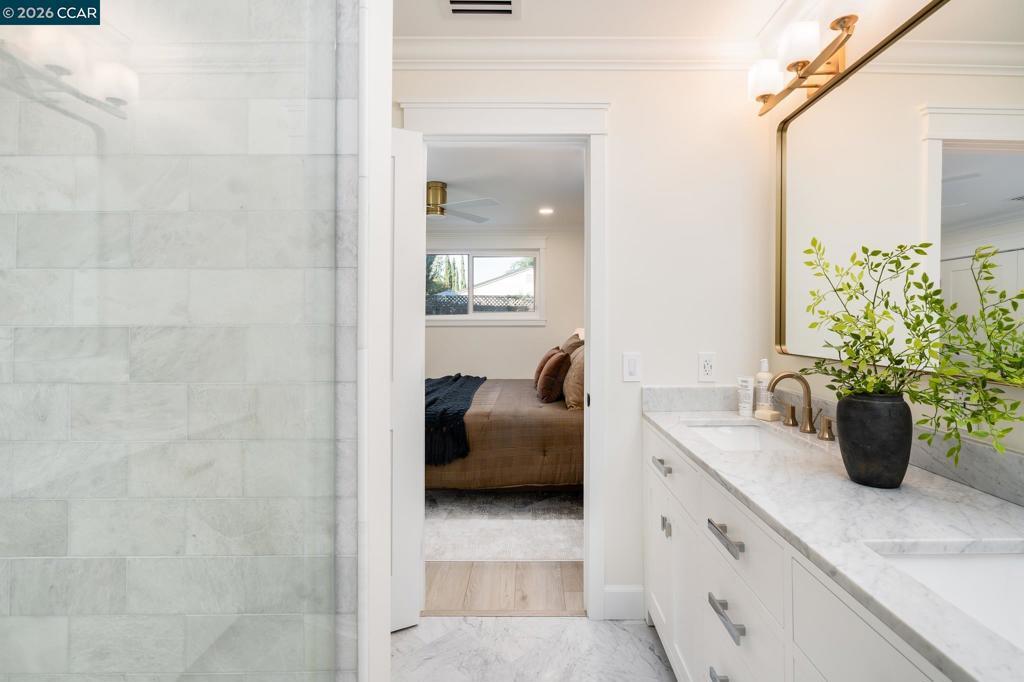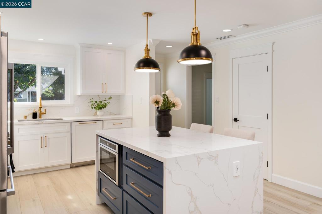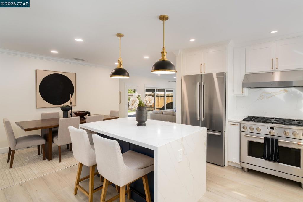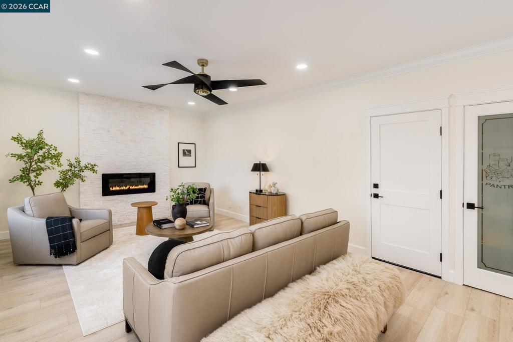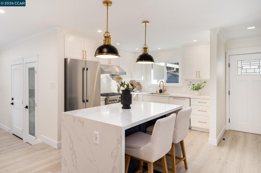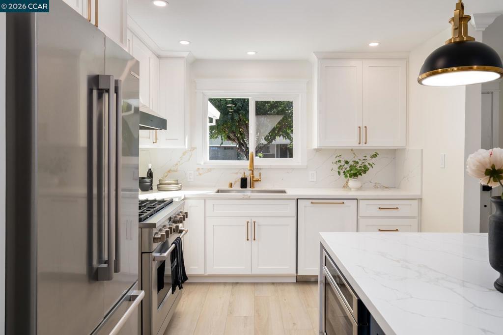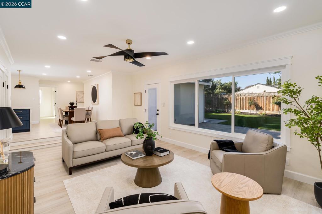 NEW kitchen, bathrooms, floors, HVAC system, mouldings, paint, lighting and electrical, appliances and more. The open-concept floor plan seamlessly blends style and function, featuring a formal dining area, expansive glass sliding doors & abundant natural light. Family room is picturesque & has new fireplace. New gourmet kitchen w/ white custom cabinetry, Quartz countertops, new refrigerator, new ss gas range & oversized island w/ new drawer microwave & large pantry closet. Versatile bonus room w/ adjacent bathroom perfect for a home office, den, or guest suite for friends & family. Luxurious primary suite offers privacy & spa-inspired bath w/ a walk-in shower, dual vanities and designer tile details. Three additional spacious bedrooms share a beautifully updated split bath w/ dual sinks & custom tile. Additional highlights include: inside laundry w/new stacking full-sized washer/dryer, attached 2-car garage, new water heater, newly epoxied garage floor, finished garage can be additional sq footage for game room or gym. NO HOA, private backyard features new lush turf lawn for low-maintenance enjoyment. New exterior pavers are stunning & add to the upscale feel of this brand new never lived in single story home.Minutes from award-winning schools, parks, downtown Pleasanton.