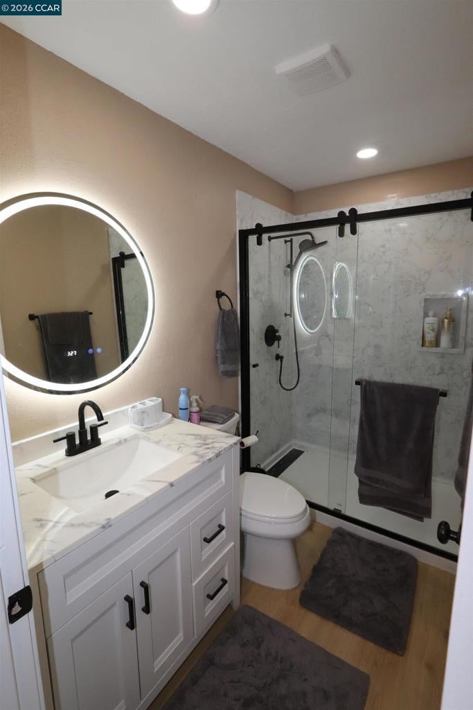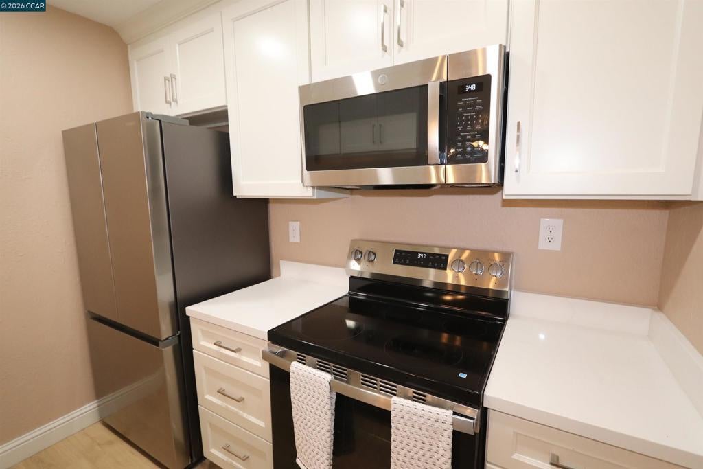 Dear Buyer - do you need help buying your first property, please read on: The seller is willing to help the buyer with closing costs. THAT IS NOT ALL!! The furniture and the new 75” LG TV are available to the buyer who buys this home for free. Spectacular Price for this completely remodeled Condo – with 822 sqft, 2 bedrooms and 1 bath, living room, kitchen and dinette area, a 1 car carport and 1 car driveway and storage unit #1. Each building has 4 units, and each building has its own laundry room with washer & dryer. This unit is #1 which is the front one-story unit. All new features: Recess lighting throughout including closets and pantry, new carpet in bedrooms and wood laminate everywhere else, 3 new ceiling fans, bedrooms and living room, new bathroom and a new walk-in shower stall with custom shower faucet and barn door shower glass doors, new toilet and vanity, new medicine cabinet and lighted mirror, new panel doors. The kitchen has new cabinets, quartz counters, new undermount sink with special features, new refrigerator with ice maker, electric stove/oven and microwave hood. New chandelier in dinette area. New double pane windows will be installed Feb 10th. The HOA has a gated pool area. Close to shopping Lowes, Costco or Safeway and Kaiser.