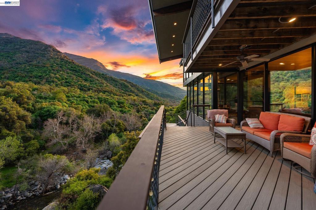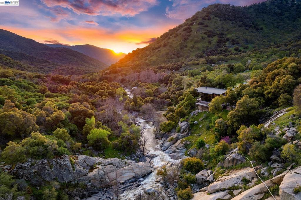 Nestled along the South Fork of the Kaweah River near Sequoia National Park, this extraordinary estate offers unmatched serenity and investment potential. A 22-ft cascading waterfall flows into private swimming ponds, creating a true oasis on 43+ acres. Perfect as a luxury vacation rental, boutique lodge, corporate retreat, or entertainment venue, the 3,500+ sq. ft. steel-framed Main home features three en-suite bedrooms, each with a viewing deck, plus a versatile multi-purpose room/office that could serve as a 4th bedroom. Floor-to-ceiling gold reflective windows showcase breathtaking views of the waterfall, river & mountains. The grand family room stuns with vaulted wood ceilings, solid oak flooring & a 24-ft stone fireplace. A chef’s dream kitchen boasts a massive stone island, top-tier appliances & a walk-in pantry. This extraordinary property offers sustainable luxury, with a 400-ft private well, a deeded flume for a reliable water & potential electricity source & owned solar panels with a transferrable 25-year warranty feeding directly into the grid. Whether you're seeking a private sanctuary, a Luxury investment property or an unforgettable event venue, this estate is a rare opportunity to own an exclusive retreat in one of the most breathtaking locations imaginable!