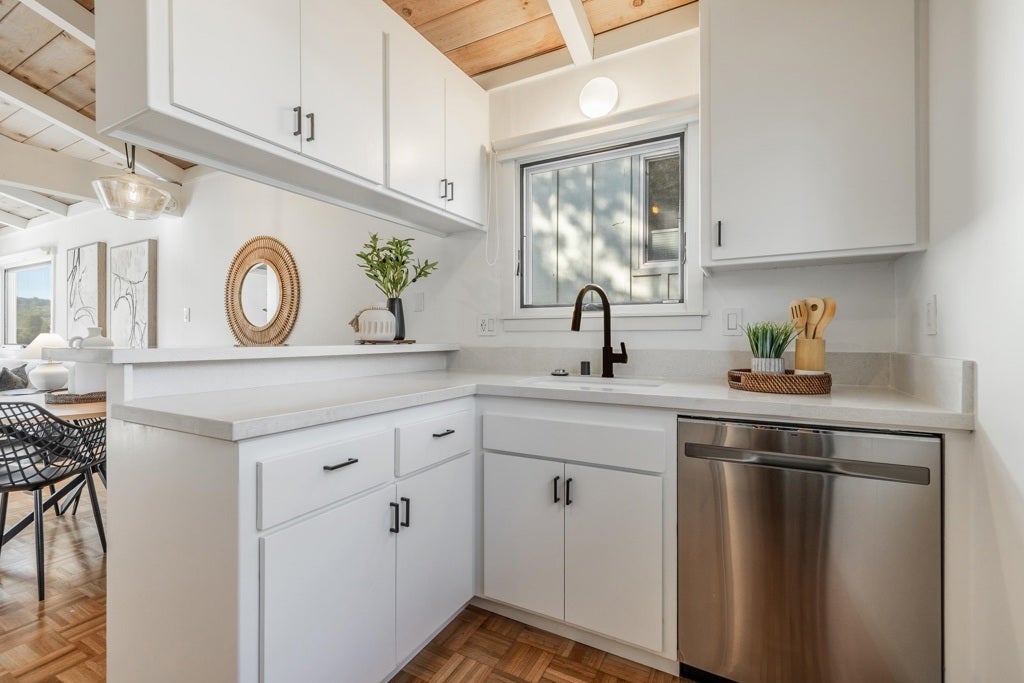 Serene Hillside Sanctuary with Iconic Mt. Tam Views! Perched above the heart of downtown, 148 Ridgeway Ave is the quintessential Fairfax retreat you’ve been waiting for. This charming 2-bedroom cottage blends mid-century character with natural serenity, featuring soaring open-beam cathedral ceilings and walls of glass that frame stunning views of the hills and Mt. Tamalpais. Enjoy seamless indoor-outdoor living with a spacious view deck—perfect for morning coffee or sunset entertaining. With a flexible lower-level bonus room (ideal for a home office or music studio) and a street-to-street lot just steps from world-class hiking trails and vibrant local dining, this home offers the ultimate Marin lifestyle.