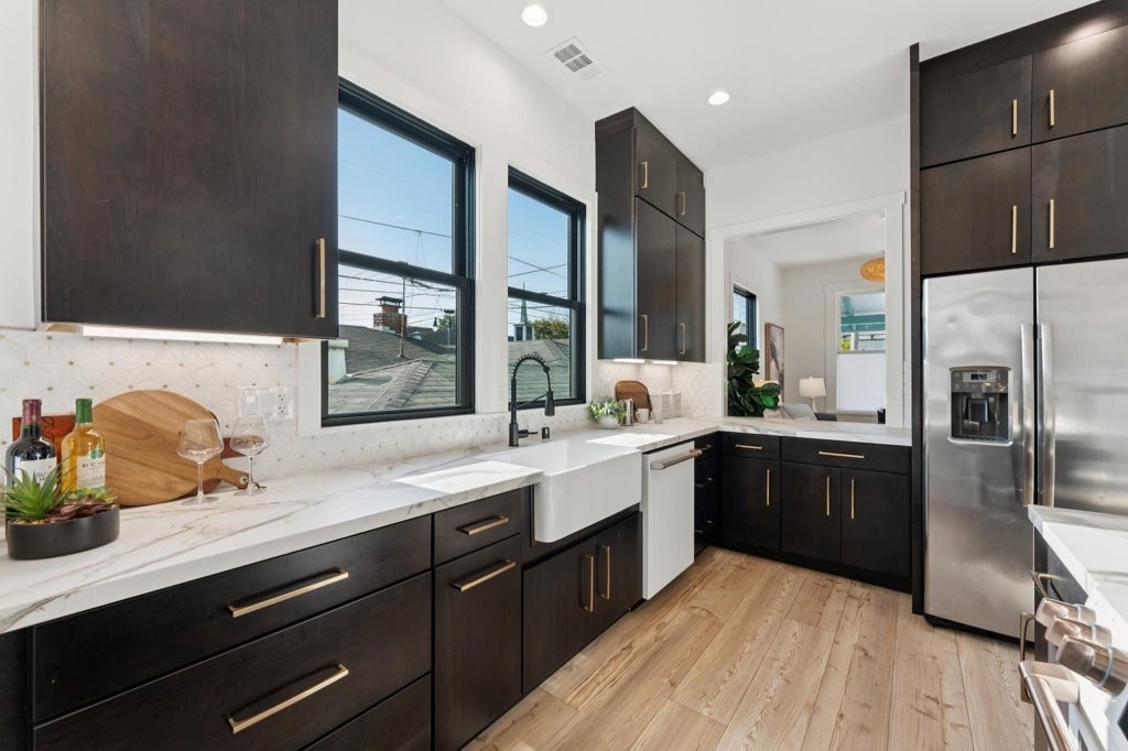 Set in the heart of Alameda’s beloved East End neighborhood, 1308 Court Street is a remarkable transformation of a turn-of-the-century Victorian cottage into a spacious, light-filled home designed for modern living. Originally built in 1900, the residence has been comprehensively reimagined and expanded to offer more than 2,100 square feet* of refined interior space, with permitted updates to electrical, plumbing, windows, and much more. High ceilings and gracious proportions define the main level, which features a formal living room, two oversized bedrooms, and a welcoming eat-in kitchen outfitted with new appliances (2024) and direct access to a deck overlooking the backyard. The newly created lower level expands the home’s versatility, offering an additional bedroom, a flexible workroom or guest space, a full bathroom, and a generous family room that opens to the landscaped yard through elegant French doors. Completed in 2025, this thoughtful renovation blends historic character with contemporary comfort, creating a home that feels both timeless and perfectly suited for today’s buyers seeking space to live, work, and grow. *Per public record.