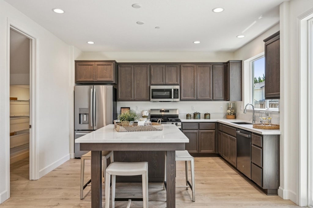 Model home for sale! 2,528 sq. ft. and offers 5 bedrooms, 3.5 bathrooms, and a flexible, thoughtfully designed layout perfect for today’s lifestyle. The first floor features an open-concept living area that seamlessly connects the family room, dining space, and chef’s kitchen. The kitchen is equipped with stainless steel appliances, granite countertops, an oversized island, custom cabinetry, and pantry- ideal for cooking, gathering. Additional features include a two-car garage with prewire for electric charge station, multi- zone HVAC, Solar energy system included, designer details throughout, and professionally landscaped front and back yards. Get the benefits of beautiful mature trees and foliage being in an established neighborhood, in combination with brand new energy efficient homes, the perfect blend of convenience, comfort, low-maintenance living, and privacy. With easy freeway access, commuting to Sacramento, Napa, or the Bay Area is a breeze. Don't miss your chance, low-maintenance living and all the conveniences you need right at your doorstep. Midway Meadows provides everything you need to live comfortably and conveniently, just minutes away from shopping, restaurants, entertainment, North Bay hospital, parks and recreation! Photos are of the actual home.