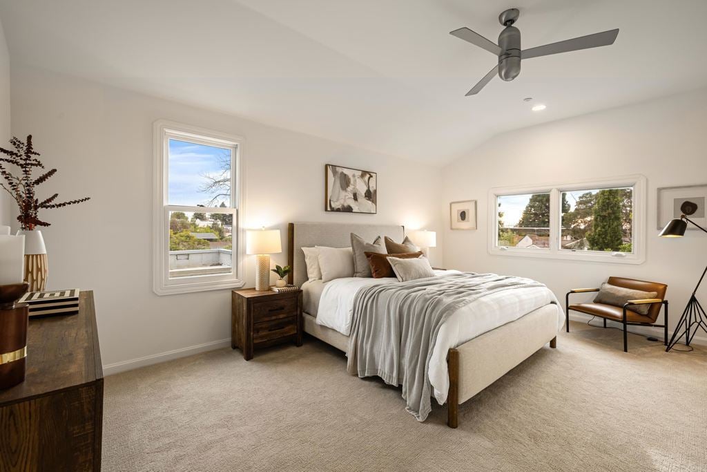 Beautifully remodeled and expanded, this elegant Albany home exudes pride of ownership and curb appeal from the moment you arrive. The inviting front landscape features brick paver pathways, mature plantings, and a thoughtfully designed entry that sets the tone for the home’s warmth and sophistication. Offering approximately 1,817 sq. ft. of living space on a flat 3,600 sq. ft. lot, it’s ideally located in central Albany—close to top-rated schools, parks, Solano and Gilman Avenue shops and eateries, BART, UC Berkeley, and I-80. Inside, the open living and dining area with a fireplace creates an inviting space for gatherings, flowing seamlessly to a beautifully remodeled kitchen with stainless steel appliances, modern finishes, and elegant design details. The kitchen connects both to a spacious family room below and a light-filled primary suite above. The family room opens through French sliding doors to a private deck and garden with patio and mature, low-maintenance landscaping—perfect for indoor-outdoor living. A nearby bath with radiant heated floors and Toto washlet complements a vintage wood-paneled bonus room, ideal for an office or hobby room. Upstairs, the west-facing primary suite offers a generous walk-in closet and an elegant en-suite bath. Much more, a must see!