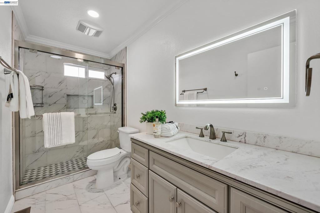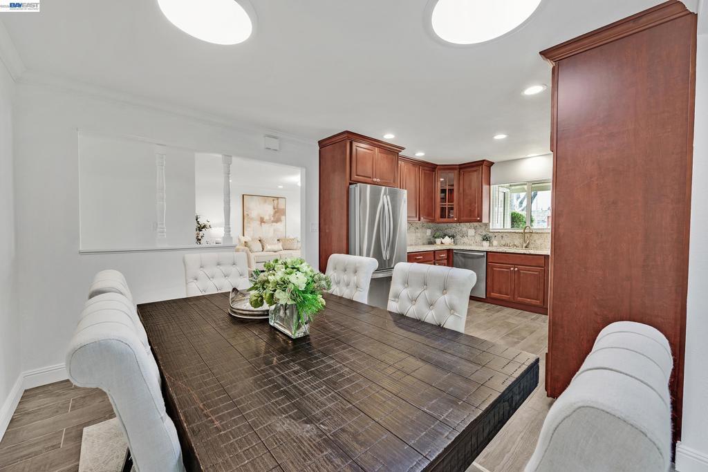 This beautifully updated NorthWest facing home has it all and is ready for you to move right in! Nestled in the West View Estates neighborhood of Union City, highly coveted for its Top-Rated Schools. Situated on an expansive 7,425 sqft lot, this 3 bedroom 2 bath home offers the perfect blend of modern comfort and everyday functionality. Natural light fills the Bright and Open Living Area which has been updated with Vinyl Plank Flooring, Recessed Lighting and Dual Pane Windows.The Spacious Kitchen features Granite Countertops, rich Cherry Cabinets, Stainless Steel Appliances, a New Cooktop and Range Hood. The kitchen open up seamlessly to the Dining Room and Family Room- perfect for day to day living and entertaining. Featuring 3 Generously Sized Bedrooms with Ample Closet Space and 2 beautifully Updated Bathrooms with modern finishes. Additional highlights include Side Yard Access ideal for RV or boat parking, a finished garage with Epoxy Flooring, newer driveway, a backyard Storage Shed, mature Fruit Trees, and a Patio Area perfect for outdoor dining and relaxation. Conveniently located near Parks, Union Landing Shopping and Dining, BART, and easy access to Highways 84 and 880. Near Top-Rated Schools: Tom Kitayama Elementary, Itliong-Vera Cruz Middle School, and James Logan HS.