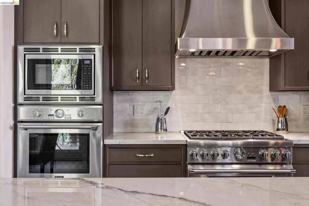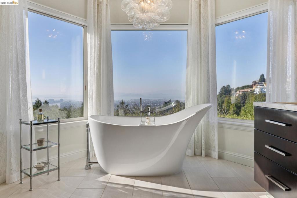 Grand views at the top of the Claremont Hills offers unique view backdrop for everyday living at 1426 Grand View Drive. Vaulted ceilings highlight drama and light, stunning renovations embrace quiet luxury lifestyle. Breathtaking San Francisco skyline & bay views in formal living & formal dining rooms. Superbly renovated kitchen incorporates dual chef culinary requirements with custom cabinetry, high-end appliances, enormous work island and tranquil breakfast room opening to patio gardens. Open concept family room opens to patio and SF skyline views for tranquil sunset viewing and entertaining. Media room on main level has full bath and provides flex use as additional primary suite. Re-imagined primary suite retreat on lower level has fireplace in sitting room, customized walk-in closet, private balcony with views, and renovated luxe bath with SF views. Additional living areas include home office, personal gym, two additional bedrooms with two full baths. Close to the Claremont Club & Spa Hotel. Located only 10 minutes to Rockridge BART, Market Halls specialty shops, cafes & restaurants. Elmwood shops & eateries also nearby! Easy freeway access to HWYs 13, 24 & 580 for dream commute to San Francisco or Marin. Views: Downtown